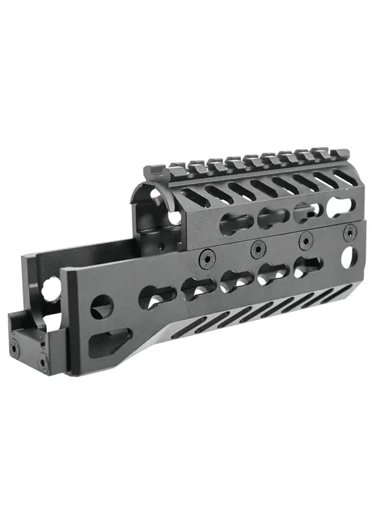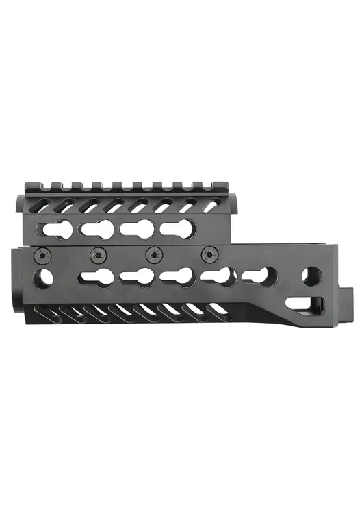 Тактическое цевье на АК Patriot BH-MR68 выделяется наличием интерфейса KeyMod, применяемым для установки планок и других элементов тюнинга, таких как ЛЦУ, фонари, тактические блоки, а также рукоятки и сошки. Кроме прочего, на верхней части накладки газовой трубки предусмотрена направляющая Weaver, выступающая платформой для крепления коллиматорных прицельных приспособлений.