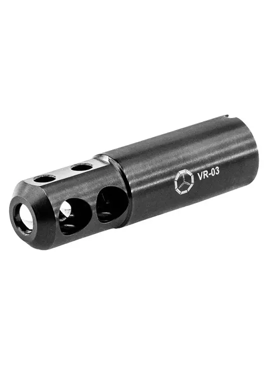 ДТК (дульный тормоз-компенсатор) VR-03 предназначен для установки на карабины Сайга-МК 03/033 и TG2 исполнение 03, а также на винтовку Вектор-7,62. Он разработан для уменьшения отдачи и подброса ствола при выстреле, а также для компенсации увода ствола вверх. ДТК имеет резьбу М24х1.5 и совместим с патронами калибра 7.62х39.
