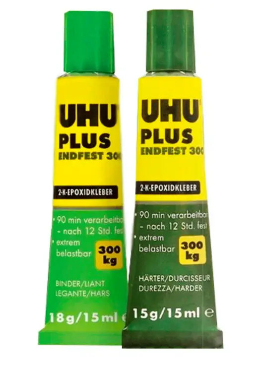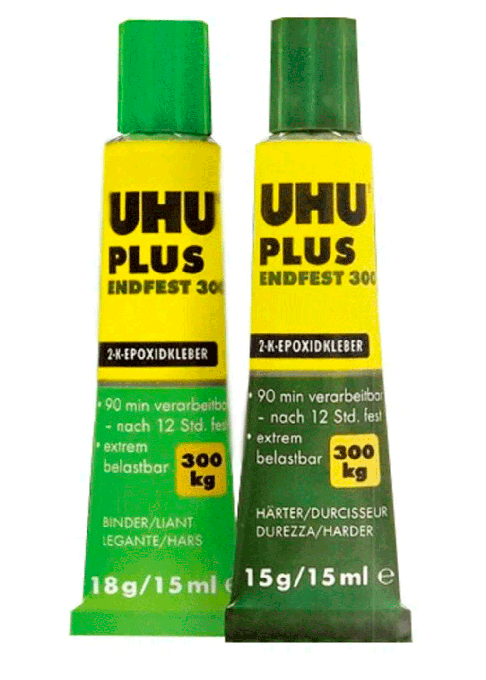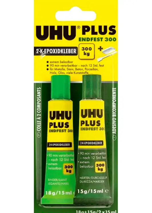 Эпоксидный клей UHU ПЛЮС 33г 45640 двухкомпонентный продукт, не содержит растворителя. Применяется для надежного соединения металла, стекла, фарфора, дерева, резины и пластика. Вещество обладает электроизолирующими свойствами. Устойчив к кислотам, щёлочам, маслам и растворителям. Успешно выдерживает нагрузку до 300 кг/см2.