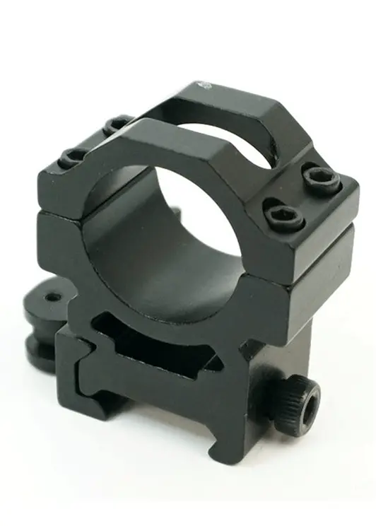 BH-RS42 – среднепрофильные быстросъемные кольца, с высотой посадки 15 мм, пригодится для установки оптических и коллиматорных прицелов с размером трубки 25,4 мм и диаметром объектива до 55 мм, на планку Weaver. Корпус выполнен из алюминиевого сплава, поверхность анодирована, устойчива к коррозии. Для фиксации на монтажной планке используется рычажный механизм, что делает установку простой и быстрой.