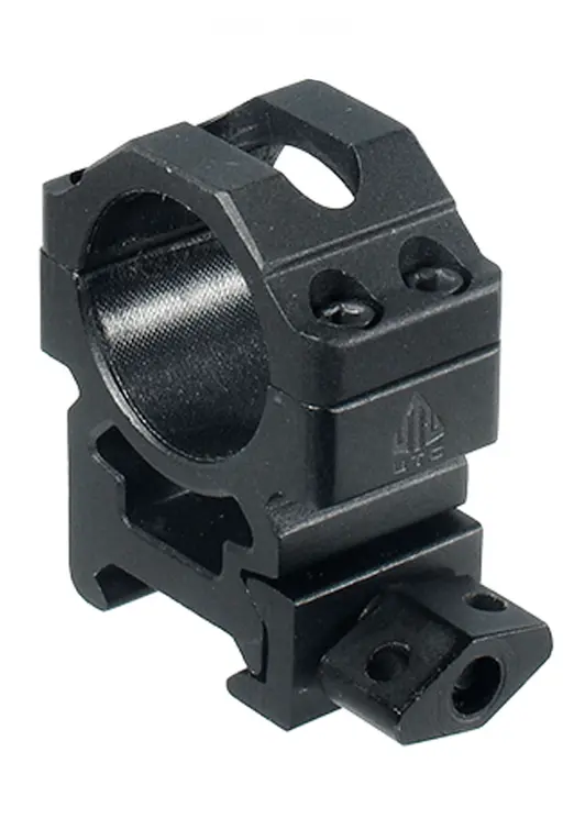 Установленные кольца надежно закрепляются на планке (пружины создают необходимое напряжение для блокировки затяжной пластины). Надежная система фиксации оптики в кольце - 4 винта. Мягкие прокладки из синтетического материала для защиты корпуса оптического прицела. В конструкции колец имеется технологическое отверстие, которое позволяет при установленном прицеле стрелять, используя открытые прицельные приспособления (целик, мушка).