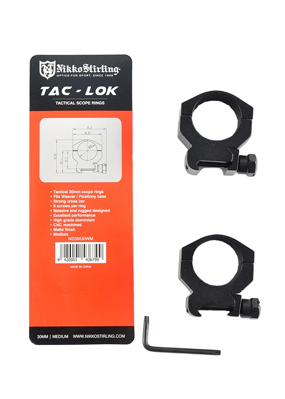 Кольца 30 мм Nikko Stirling Sport Match, на Weaver – среднепрофильные кольца, с высотой посадки 9 мм, пригодятся для установки оптических и коллиматорных прицелов с размером трубки 30 мм на планку Weaver. Корпус выполнен из стали, поверхность анодирована, устойчива к коррозии. Каждое кольцо фиксируется на базе оружия одним стальным винтом, который можно закрутить рукой.