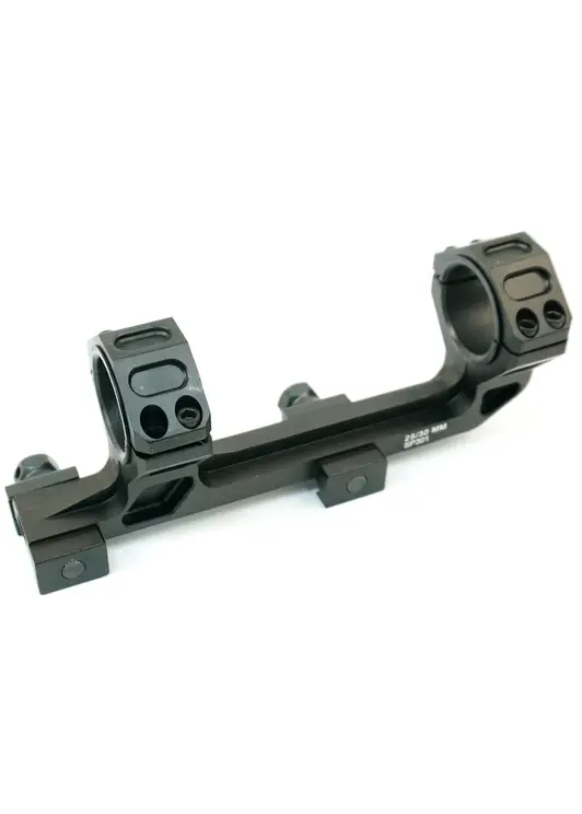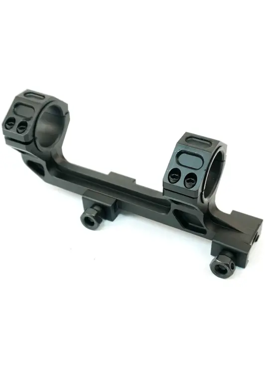 BH-MS14 – высокопрофильный быстросъемный монолитный кронштейн с кольцами, с высотой посадки 25 мм, пригодится для установки оптических и коллиматорных прицелов с размером трубки 25,4 или 30 мм, на планку Weaver. Корпус моноблока, длиной 148 мм, с выносом 25 мм выполнен из алюминиевого сплава, поверхность анодирована, устойчива к коррозии. Фиксируется на базе оружия двумя стальными винтами, которые можно прикрутить рукой.