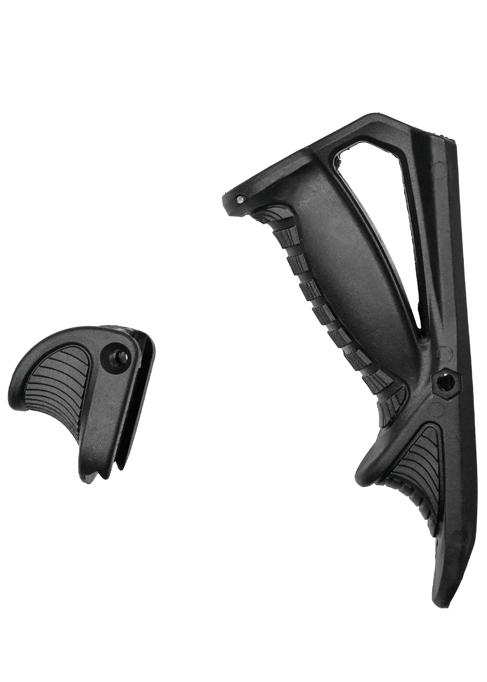 Компания Патриот, специализирующаяся на изготовлении всевозможных аксессуаров и ЗИПа для оружия, представила новую тактическую рукоять для размещения на планках типа Weaver с шириной крепления 22 миллиметра. В комплекте с изделием также поставляется тактический упор на цевье, позволяя стрелку при установке обоих приспособлений изменять хват в зависимости от положения стрельбы.