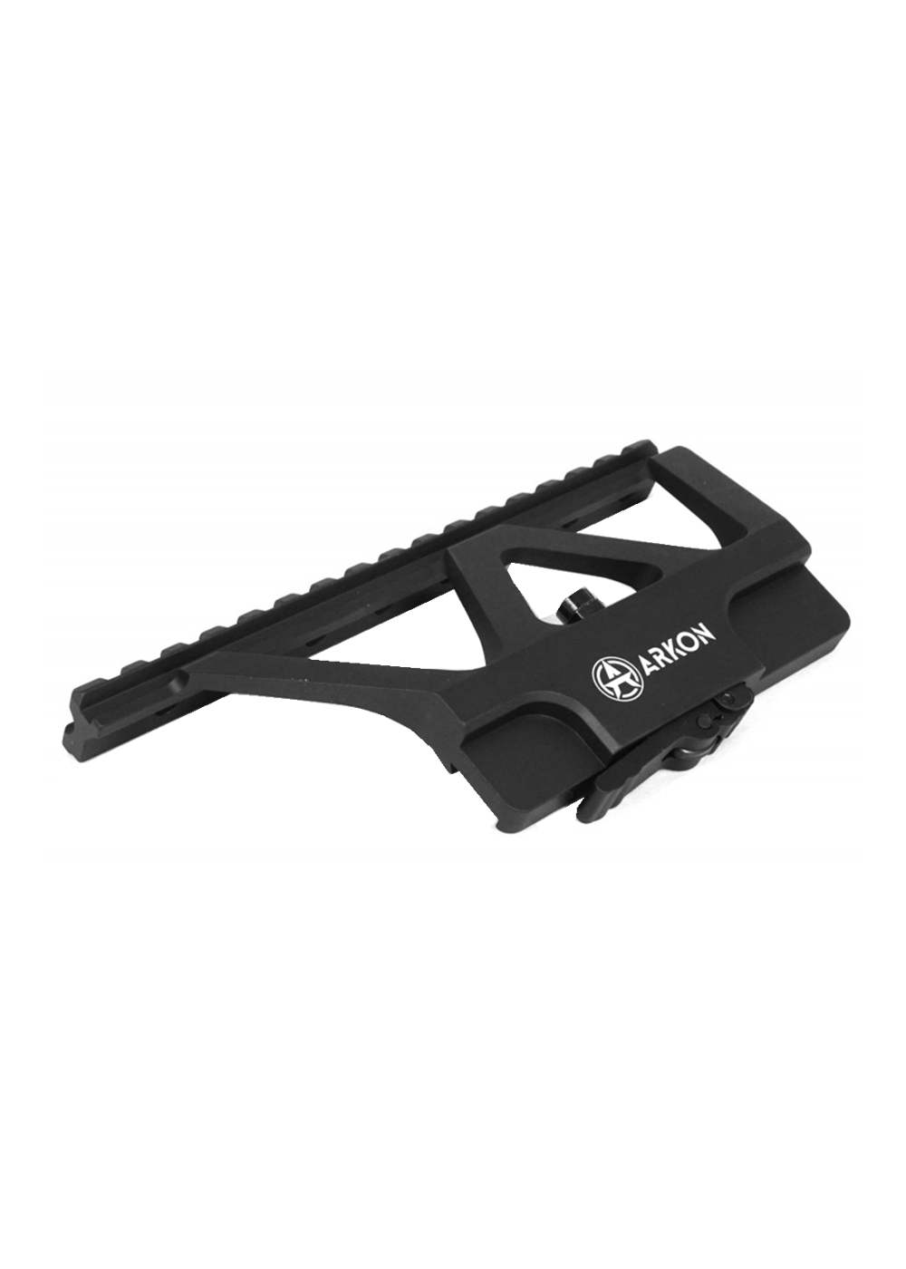 Быстросъемный боковой кронштейн Arkon с планкой Weaver для оружия Сайга/АК — надежное крепление из авиационного алюминия с защитным анодированным покрытием. Оснащен быстросъемным замком рычажного типа с механическим фиксатором и регулируемым натяжением. Монтируется на штатную боковую планку оружия, создавая верхнюю базу Weaver длиной 175 мм (16 пазов) для установки оптических и коллиматорных прицелов. Особенность модели — возможность прямой установки цифровых и тепловизионных прицелов Arkon без дополнительных креплений. Монолитная конструкция, изготовленная на станках с ЧПУ, обеспечивает идеальную точность сопряжения деталей и стабильность положения даже тяжелой оптики