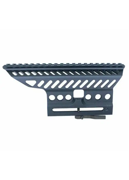 Кронштейн над ствольной коробкой является цельнофрезерованным изделием, изготовленным из авиационного алюминия черного цвета. Кронштейн устанавливается на штатную базу "Ласточник хвост", расположенную на ствольной коробке АК 103, 104, 105, 74М, 74С, акмс, АКМ, карабинов Сайга МК, Сайга МК-03, Сайга 410, и обеспечивает установку на оружие прицельных приборов. Формирует планку Вивер(Пикатинни) над ствольной коробкой оружия. Позволяет устанавливать на оружие, как отдельные оптические прицельные приборы, так и комбинацию приборов.