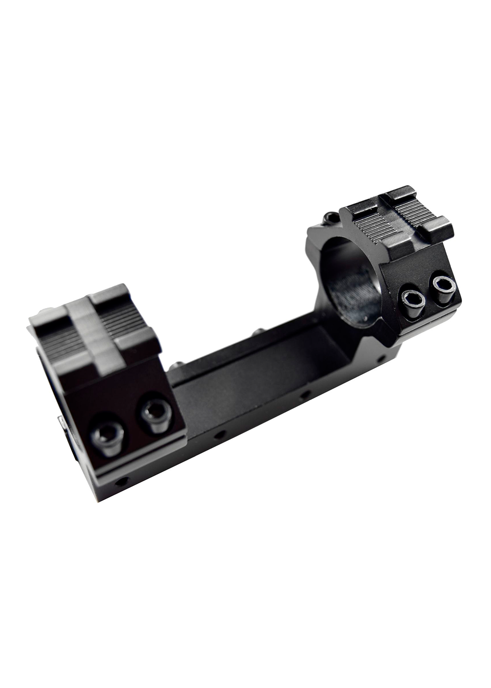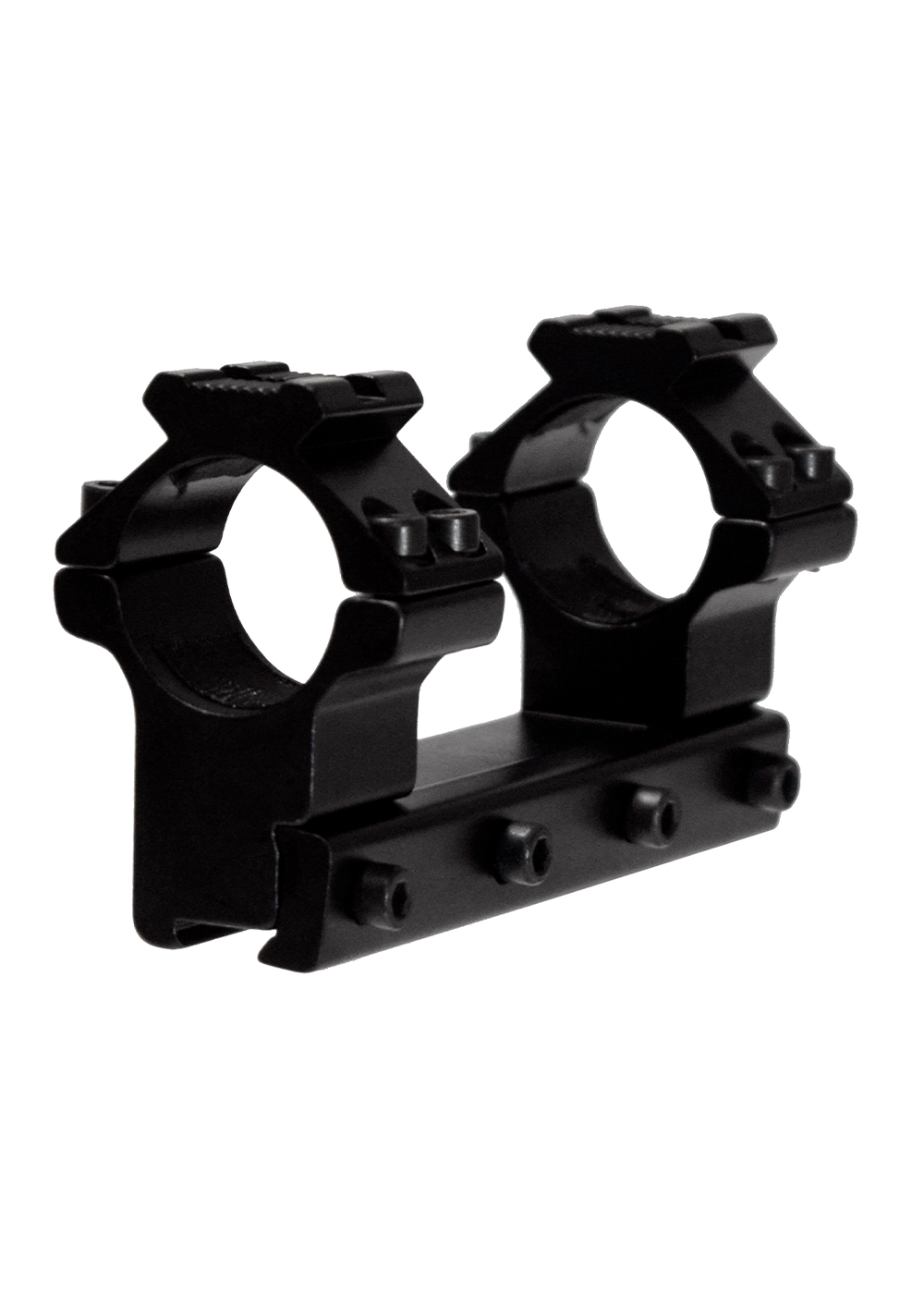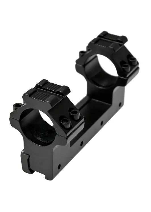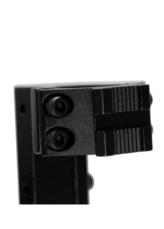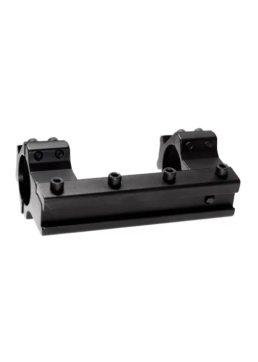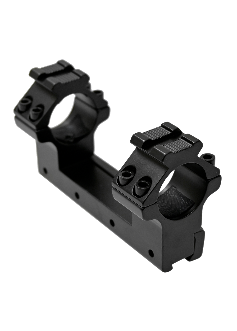 За фиксацию трубки оптического прицела отвечают два интегрированных в моноблок кольца диаметром 25.4 мм. Съемная верхняя часть креплений дополнена планками Вивер под монтаж дополнительных устройств вроде ЛЦУ или фонарика. Каждое кольцо зажимается на четыре винта, надежно удерживая прицел, а для исключения трения во время выстрела внутри расположены прокладки из нескользящего материала.