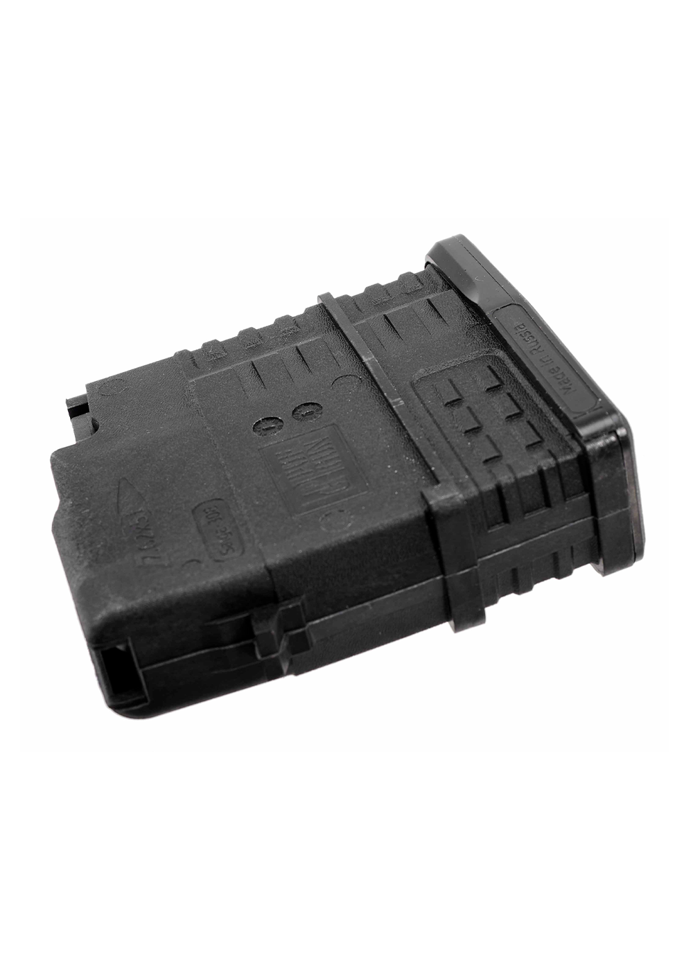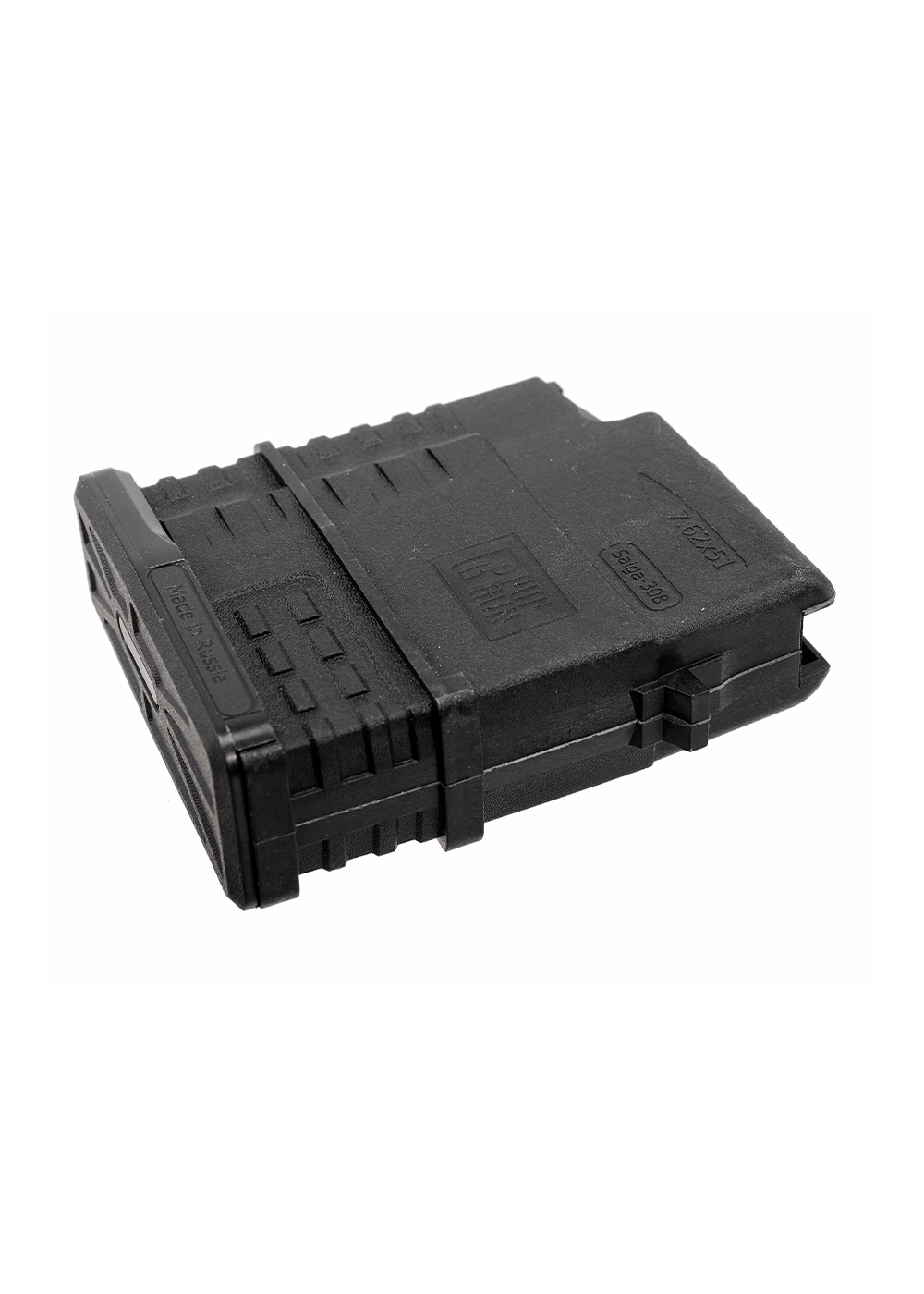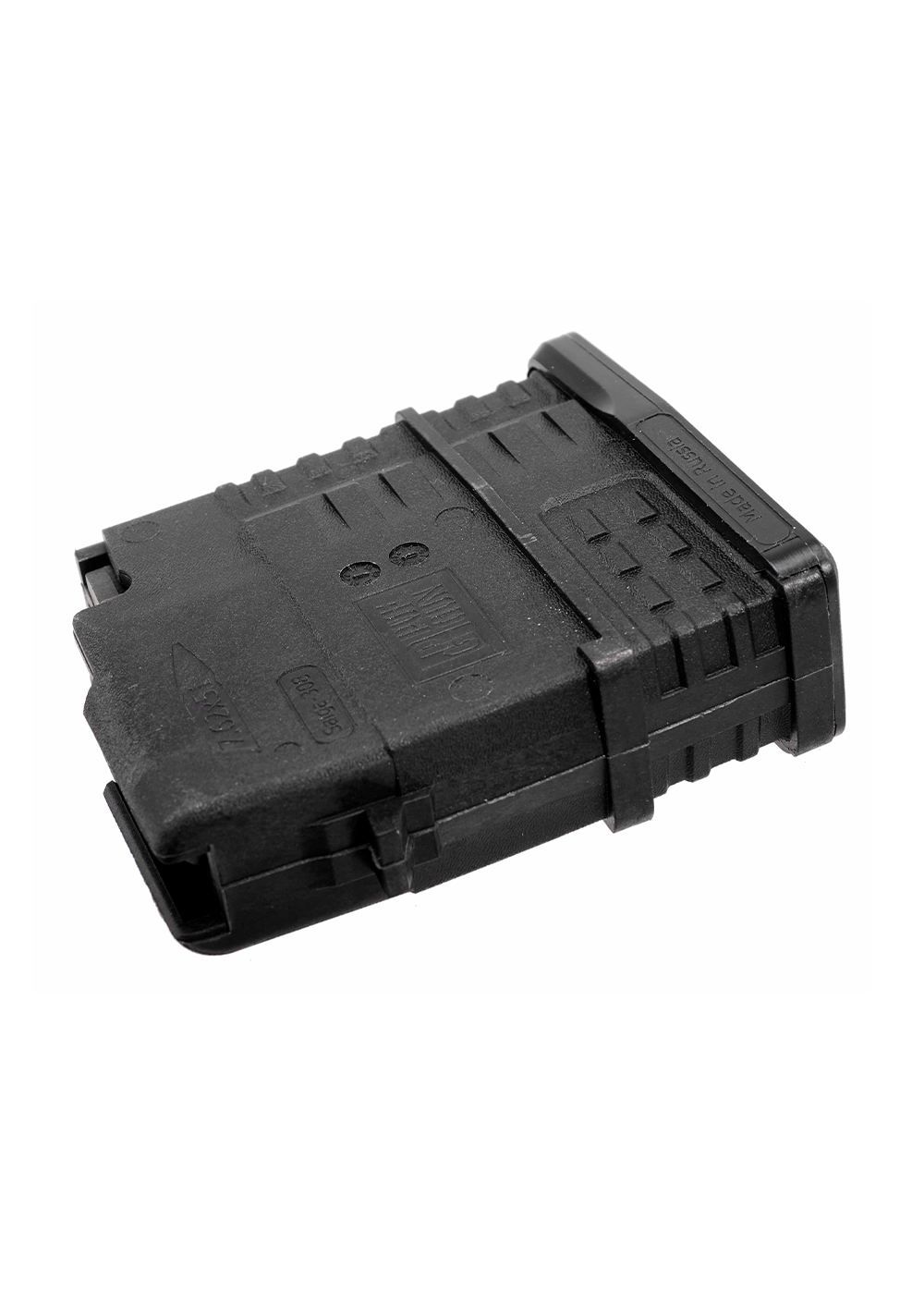 В число новых товаров бренда входит обозреваемый сменный десятиместный магазин под патроны калибра 7.62х51 миллиметров. Предназначено представленное изделие для гражданских охотничьих карабинов с нарезным стволом линейки Сайга-308. Подача боеприпаса происходит при помощи штатной пружины, для извлечения которой требуется утопить фиксирующую клавишу в основании пластиковой «пятки».
