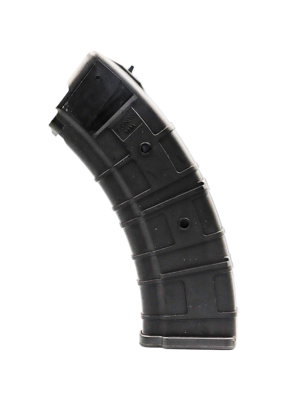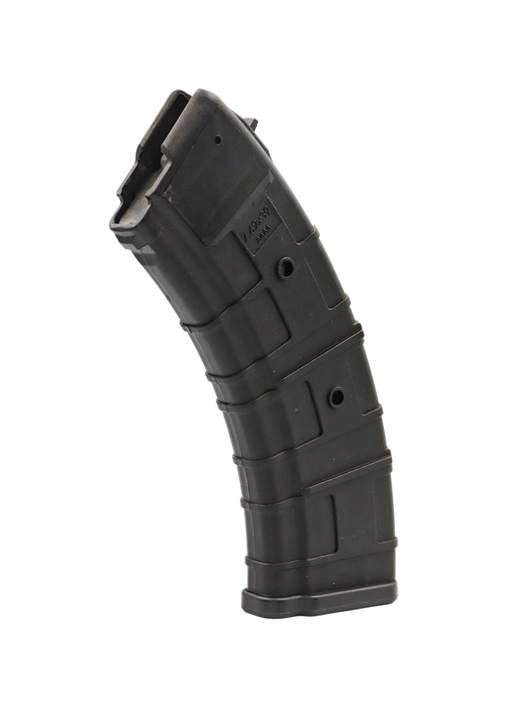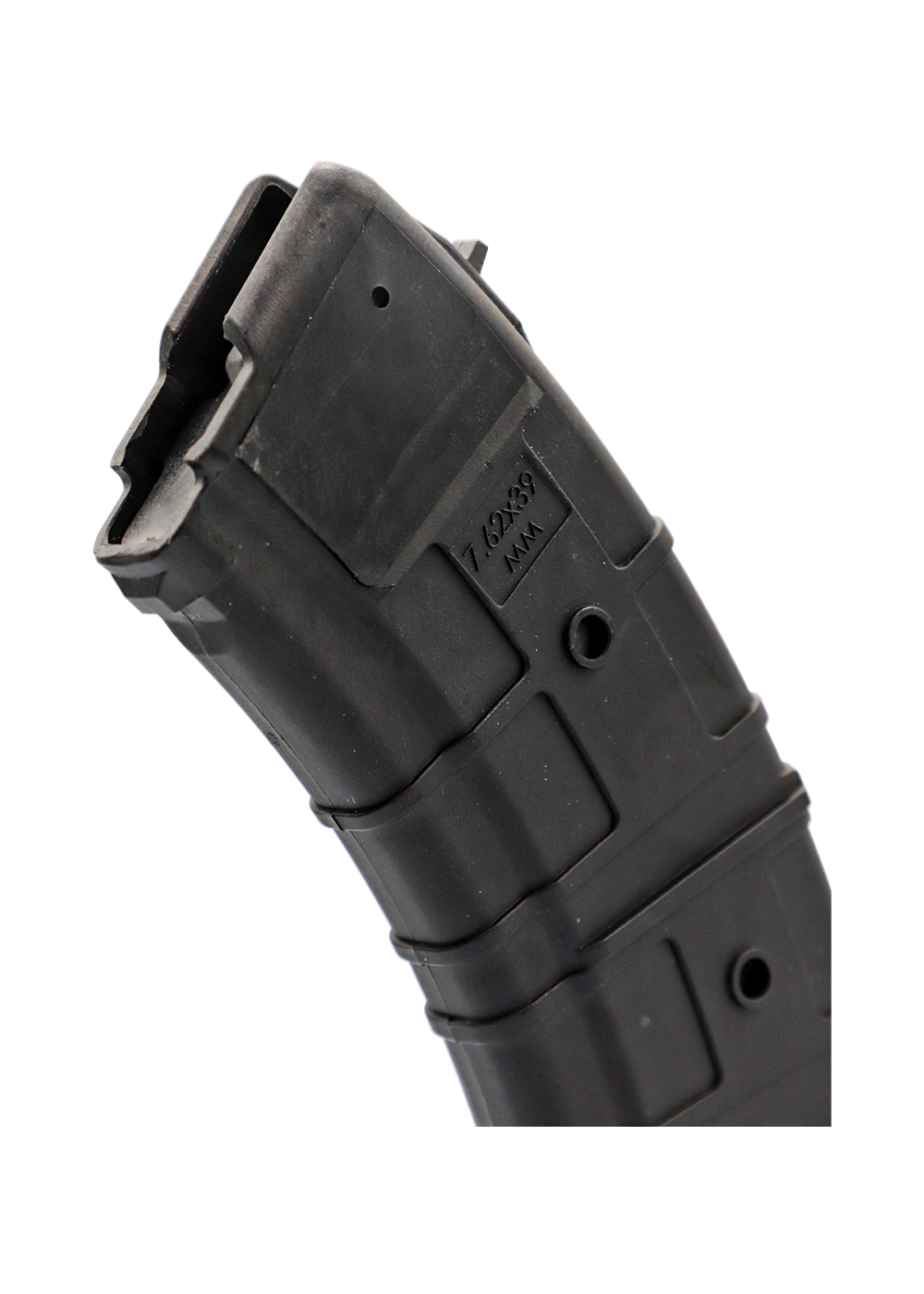 Полимерный магазин PufGun на 30 мест калибра 7,62х39 для карабина Сайга-МК выполнен из высокопрочного полиамида черного цвета, оснащен пружиной из нержавеющей стали и имеет легкоразборную конструкцию для удобства обслуживания. Модель совместима с версиями Сайга-МК без сухаря, имеет специальные метки для самостоятельного уменьшения емкости до 20 или 10 патронов. На корпусе присутствует противоскользящий протектор, обеспечивающий надежный хват. Габариты: длина 69 мм, высота 228 мм, ширина 34 мм, вес 186 грамм.
