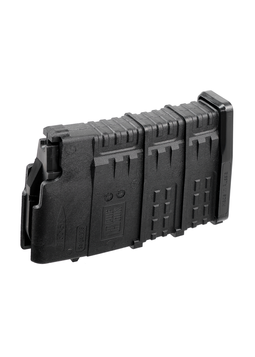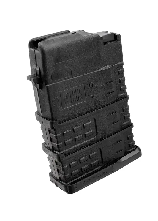 Представленный магазин Пафган Сайга 308 Mag Sg308 25-15B выделяется рельефной поверхностью, исключающей выскальзывание изделия даже при эксплуатации в условиях повышенной влажности, например, в дождливую погоду. При необходимости, рассматриваемый элемент боепитания может быть укорочен, что дает снизить вместимость до 10 или до 5 патронов, в зависимости от потребностей стрелка.