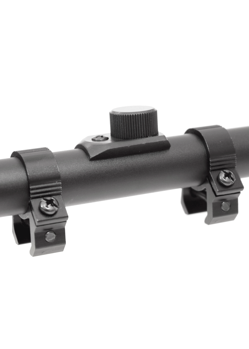 Обозреваемое прицельное приспособление предназначено для монтажа на пневматические винтовки при помощи специализированных крепежных колец или кронштейнов с центральными отверстиями в 19 миллиметров. Следует отметить, что при габаритах прицела в 270 миллиметров масса устройства не превышает 170 грамм, такие показатели достигаются за счет применения алюминиевого сплава в качестве главного материала при изготовлении, помимо маленького веса, описываемый прибор также наделен повышенной защитой от возникновения ржавчины при воздействии влаги. Стоит упомянуть, что на внешнюю поверхность корпуса у этого экземпляра наносится порошковая краска черного матового цвета, которая позволяет предотвратить образование потёртостей и царапин, тем самым продлевая срок службы девайса.