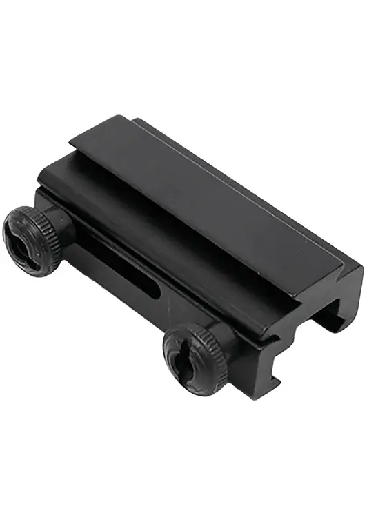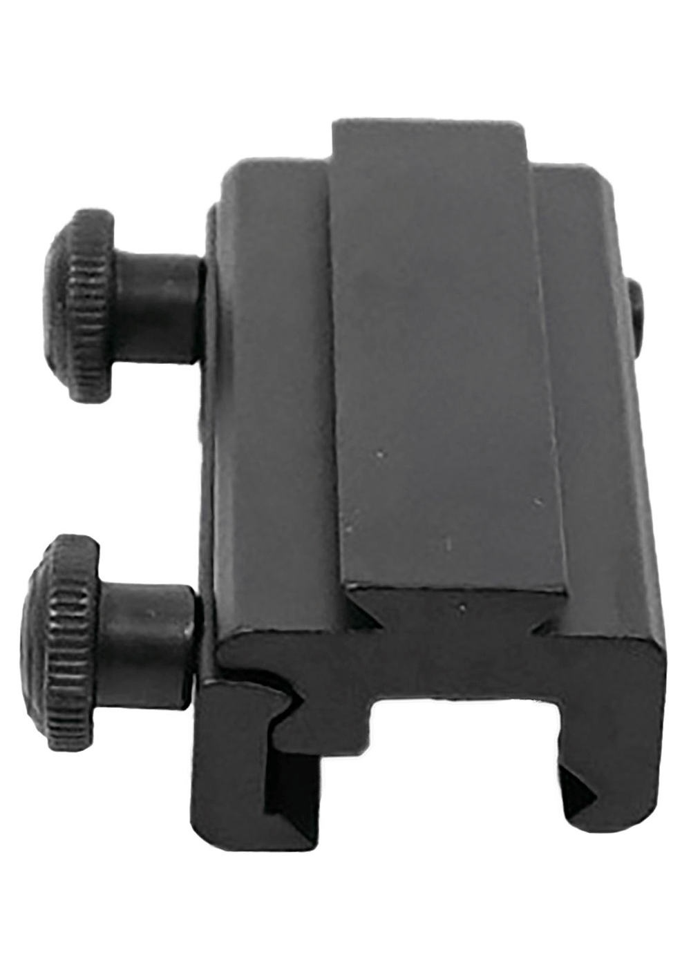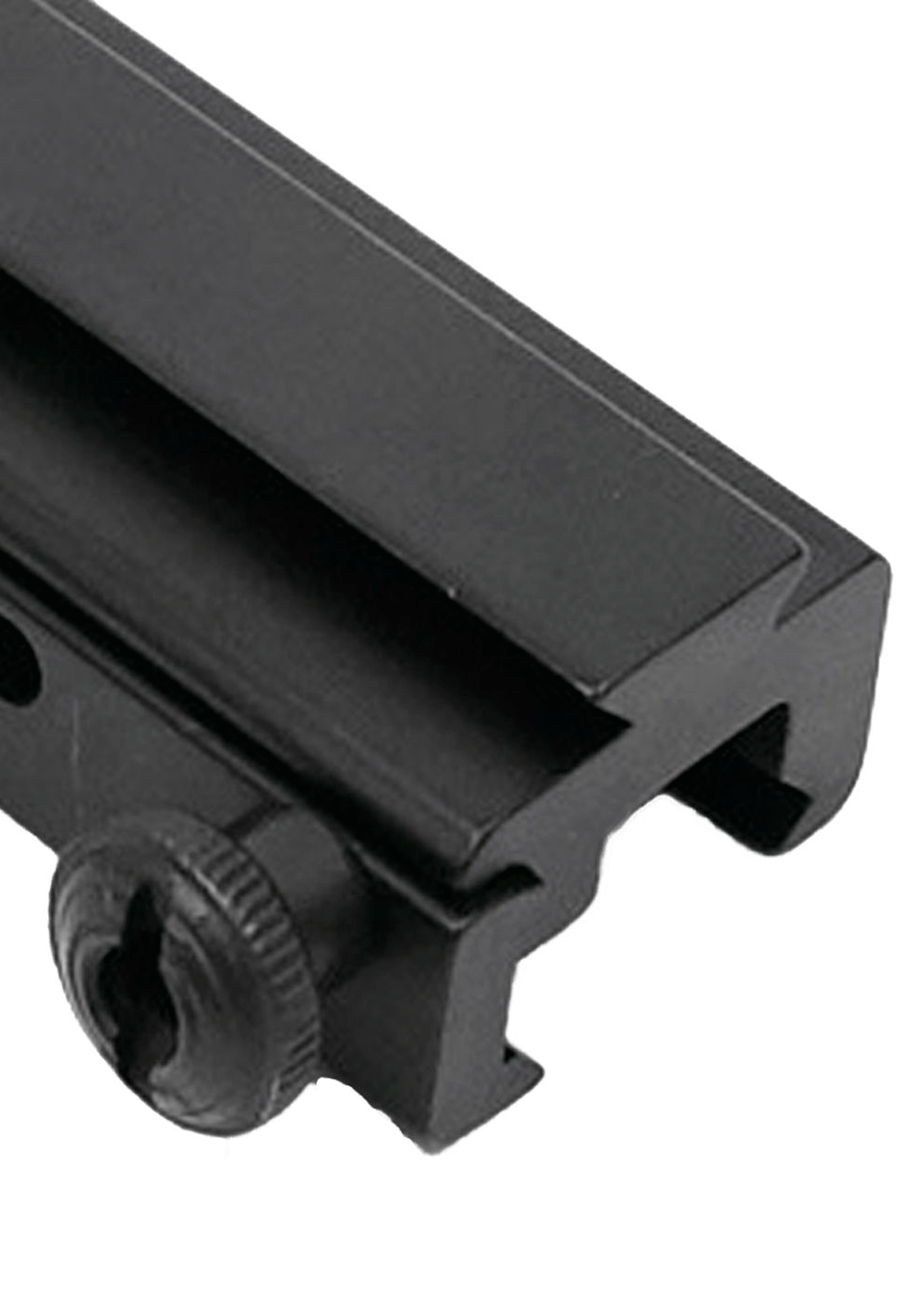 Кронштейн выполнен из легкого сплава авиационного алюминия, благодаря чему изделие не влияет на эргономику оружия, при этом поверхность обработана анодированием, исключающим негативное воздействие влаги. Переходник длиной 58 миллиметров в первую очередь позиционируется как универсальное решение под установку коллиматоров и моноблоков для малогабаритной оптики. Кроме прочего, стоит учитывать то, что после монтажа планки ось прицеливания приподнимается на высоту основания, которая составляет 2 см.