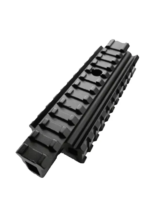 База на ручку переноски AR15/M16 с трёхсторонними планками Weaver BH-MR02 — это надёжное и практичное крепление для установки оптики и коллиматорных прицелов на оружие. Оно изготовлено из прочного алюминиевого сплава, что обеспечивает долговечность и устойчивость к различным внешним воздействиям. Крепление имеет три стороны для установки планок Weaver 22 мм, что позволяет разместить дополнительное оборудование, такое как фонари, лазерные целеуказатели и другие аксессуары. Это делает базу универсальной и удобной в использовании. База на ручку переноски AR15/M16 BH-MR02 легко устанавливается на штатную ручку для переноски оружия и фиксируется с помощью рельефного поджимного винта. Благодаря своим компактным размерам (длина — 135 мм, вес — 300 г) и чёрному цвету, она гармонично вписывается в дизайн оружия и не привлекает лишнего внимания. Это крепление идеально подходит для использования в различных условиях, будь то охота, спортивная стрельба или тактические тренировки. Оно обеспечивает надёжное крепление оптики и другого оборудования, повышая точность