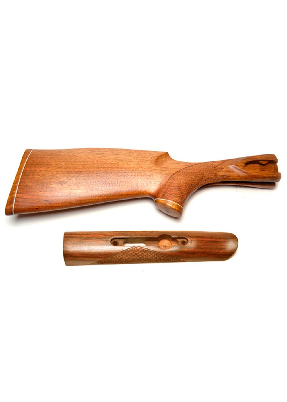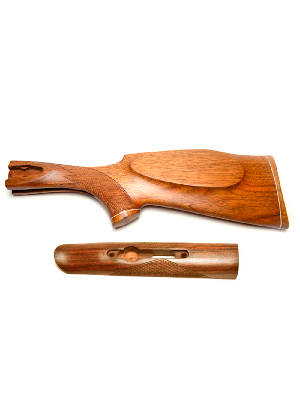 Приклад и цевье изготовлен из одной лож.болванки дагестанского ореха влажностью 10-12%. Цевье и приклад имеют одну структуру дерева;
