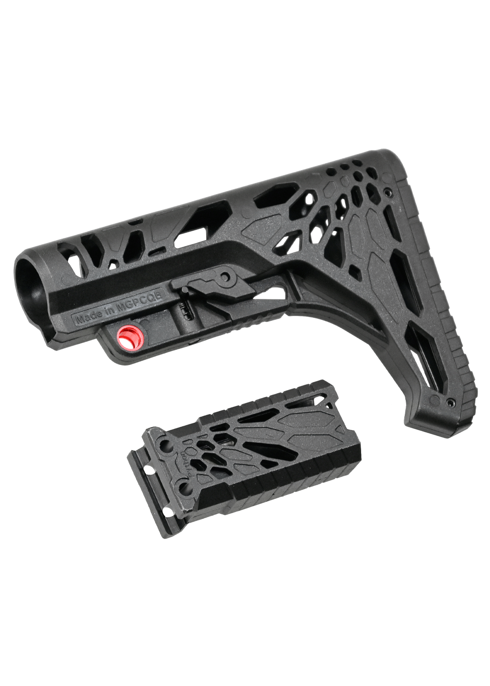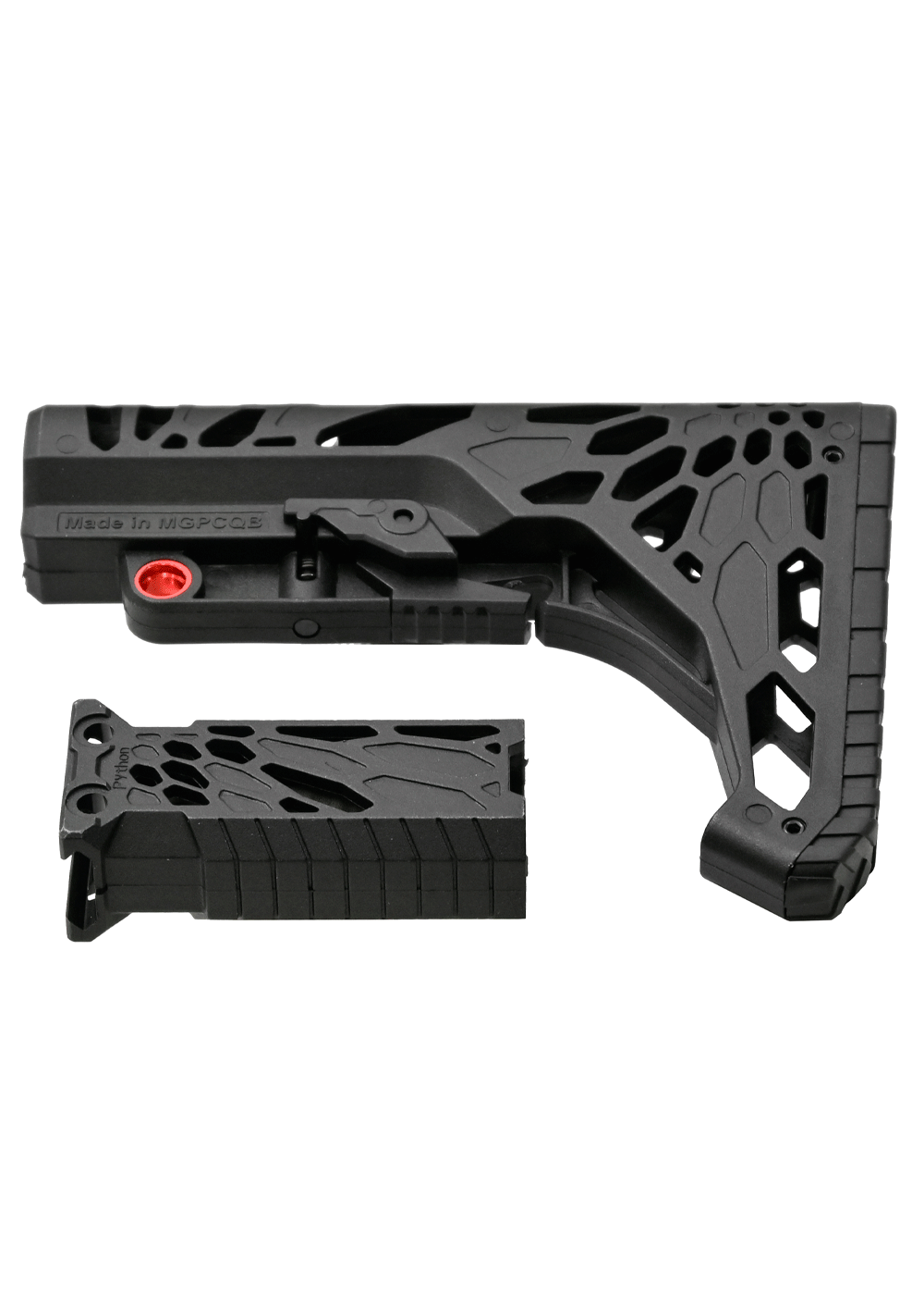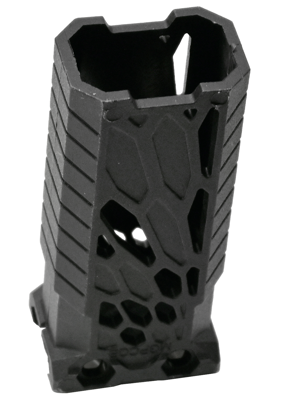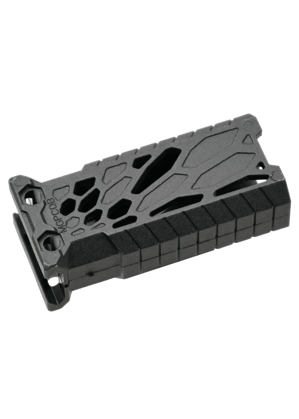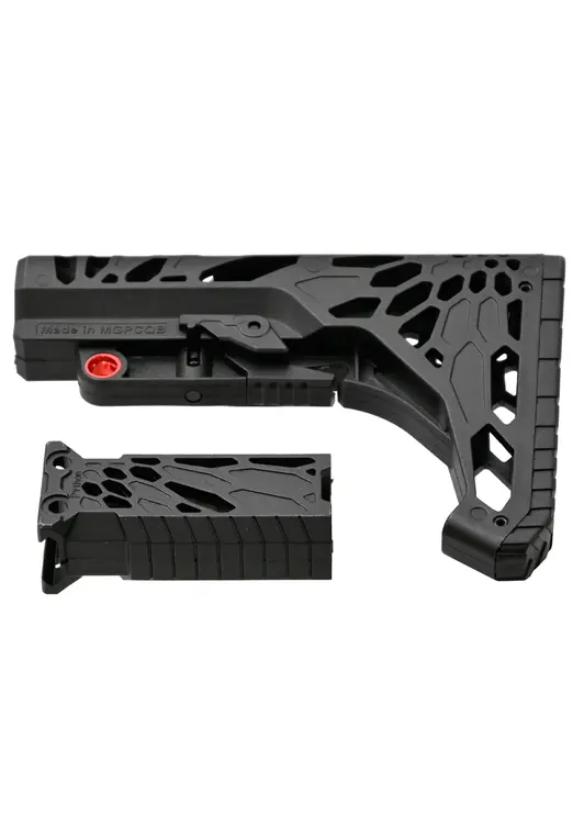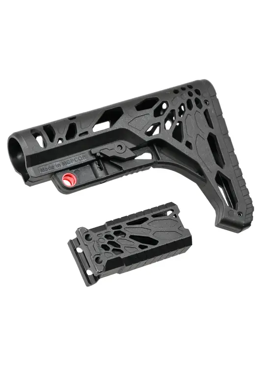 Устройство адаптировано под буферную трубу AR-15, следовательно, набор подойдет и на соответствующие переходники. Рукоять в целом универсальна — установка подразумевает размещение на Weaver с шириной планки 22 миллиметра. Креплением служат пара болтов.
