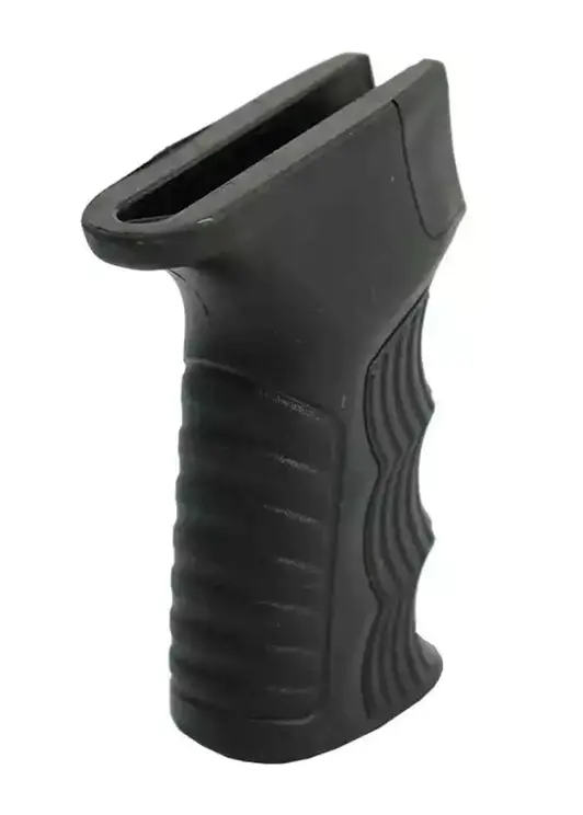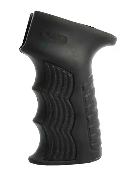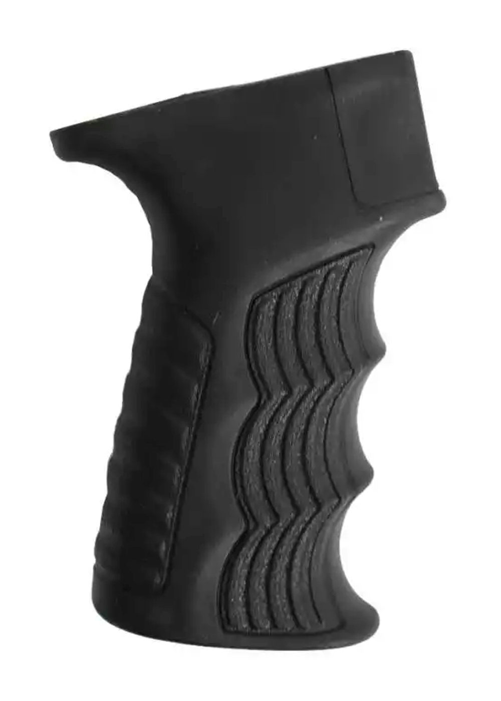 - Рукоятка на АК имеет анатомические выемки под пальцы и нижний рант, который предотвратит срыв руки во время прицеливания или стрельбы;