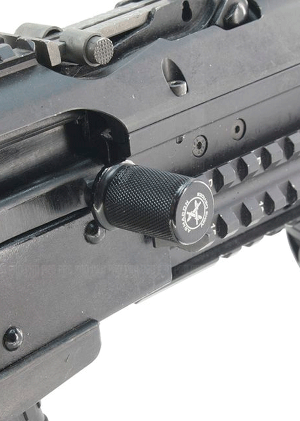 Рукоятка затвора АКМ - составная конструкция, устанавливающаяся на штатный рычаг взвода модернизированного автомата Калашникова и его гражданских версий. Разработана для исключения срыва и уменьшения дискомфорта во время перезарядки.