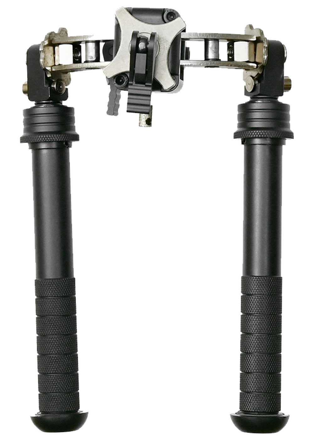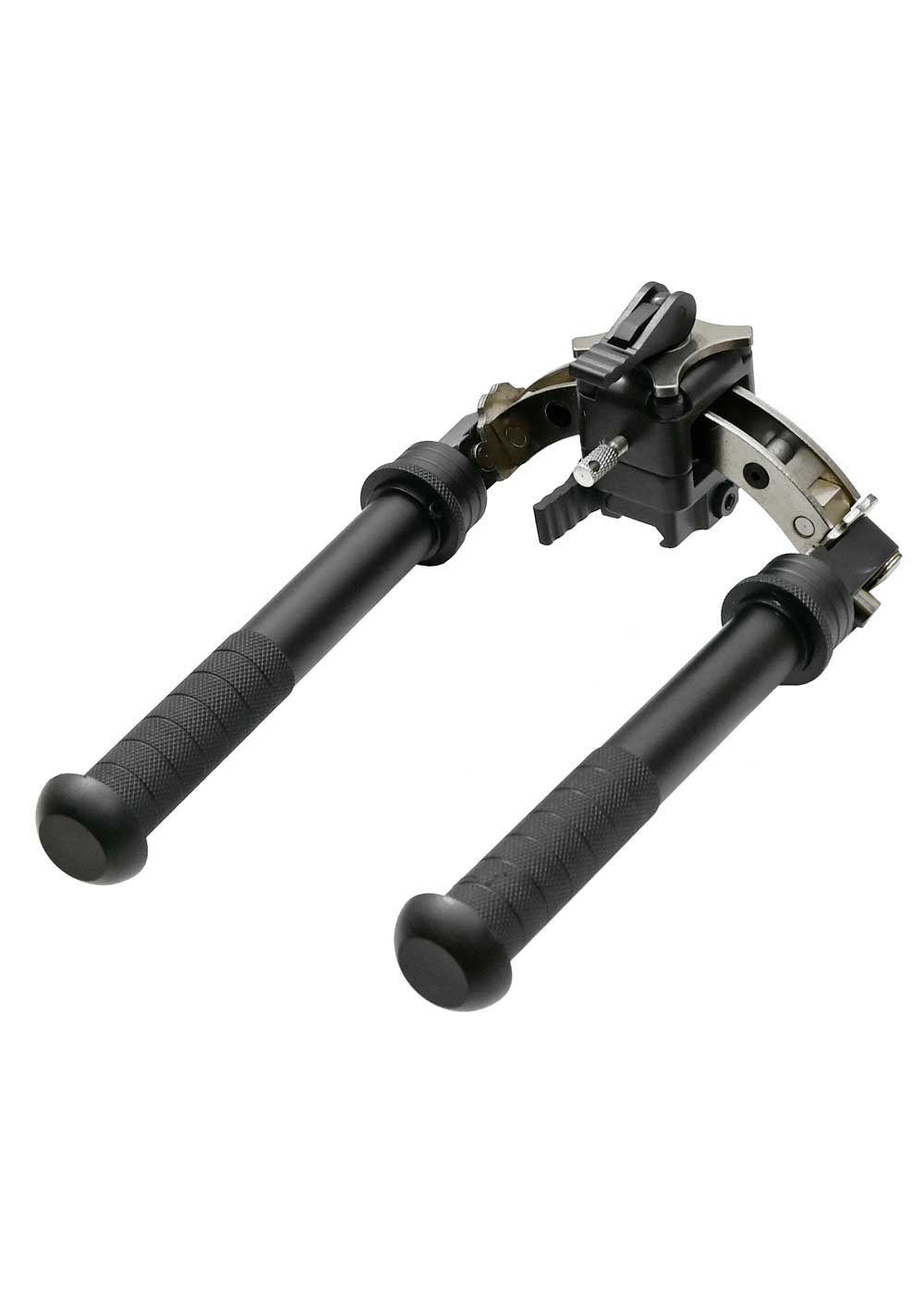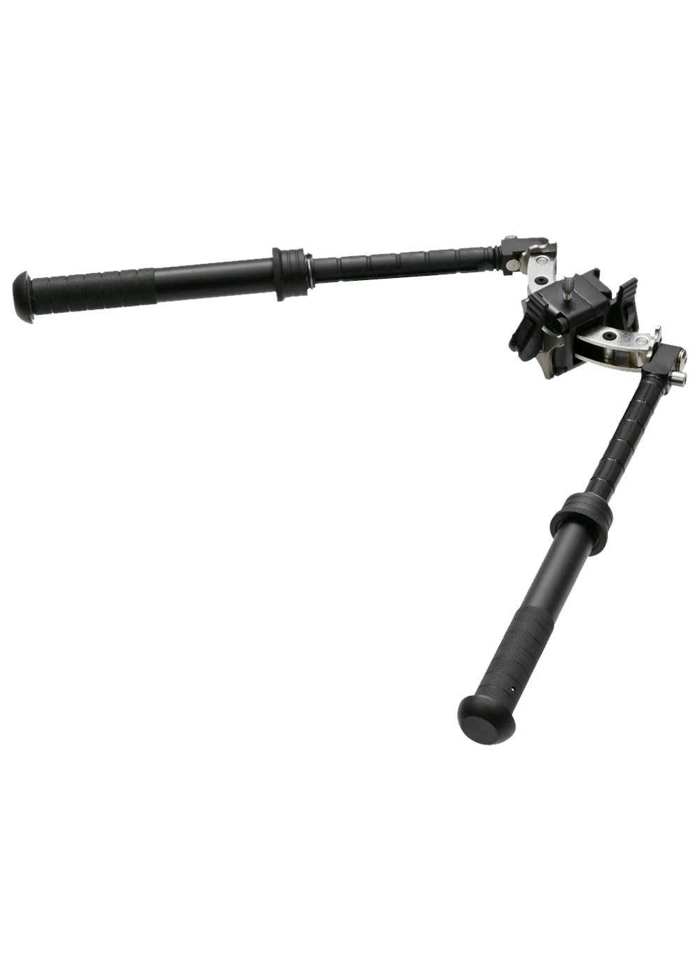 Отличительная особенность устройства - это регулируемый угол наклона с фиксацией необходимого положения посредством подпружиненного шпенька на корпусе. Кроме прочего, модель содержит телескопические ножки, которые калибруются независимо друг от друга в диапазоне длины 127 - 254 мм. Благодаря наличию прорезиненных наконечников упора, сошки способны эксплуатироваться на различной местности, исключая скольжение.