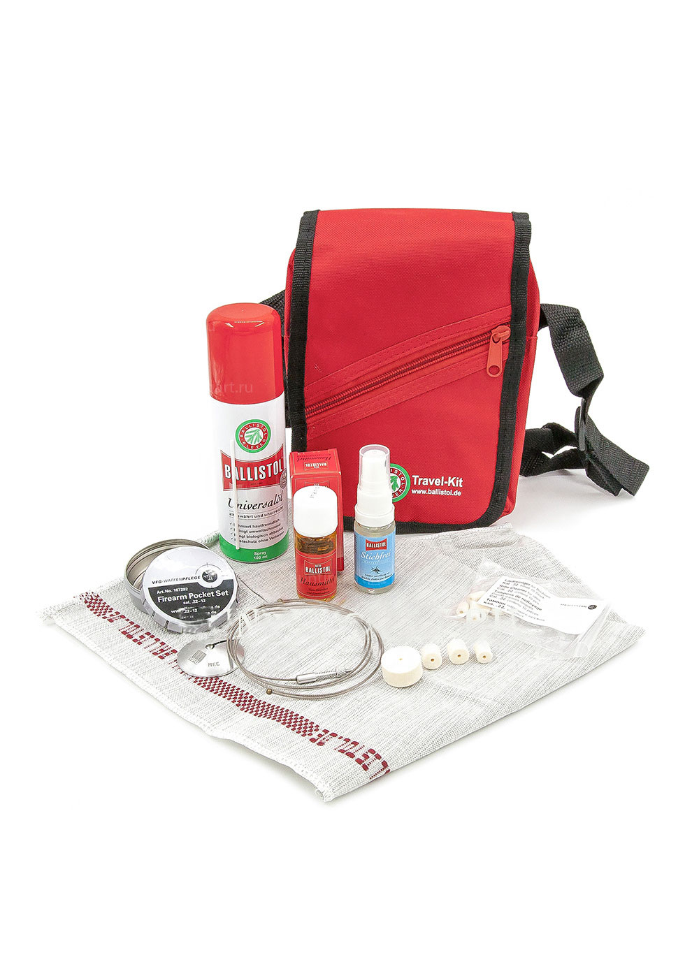 Набор для ухода за оружием “Ballistol Travel-Kit-Set” от Klever включает в себя девять предметов, необходимых для чистки и обслуживания оружия. В состав набора входят: три ершика (калибрующий, щетинный и щетинно-латунный), щетку, масло для чистки и защиты оружия, смазку для механизмов, средство для удаления нагара и меди, а также пластиковый кейс для хранения и переноски всех компонентов. Продукция Ballistol изготовлена в Германии и отличается высоким качеством.