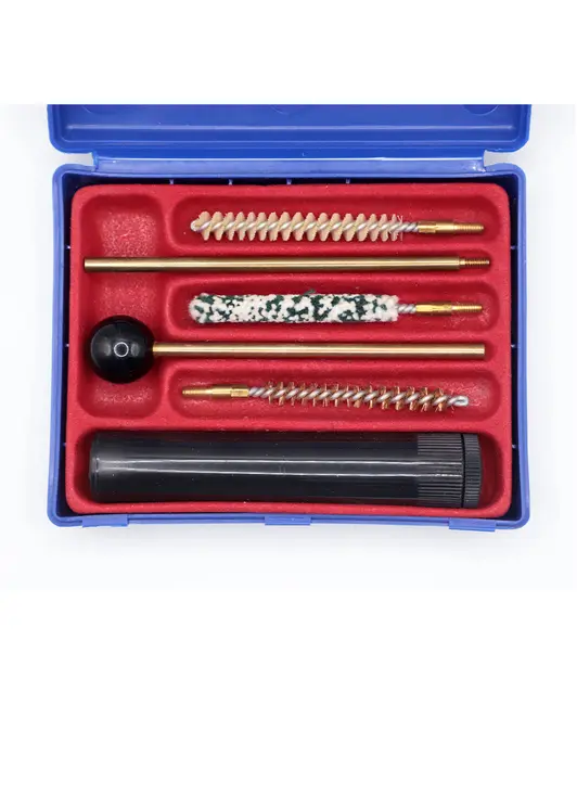 Профессиональный набор для чистки оружия калибра 5,6 мм, специально разработанный для пистолетов. Комплект поставляется в удобном пластиковом футляре с надежной фиксацией всех элементов.