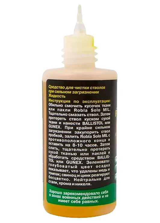 Robla-Solo Mil 65 ml не только обеспечивает безупречную чистоту и блеск вашего оружия, но и удлиняет его срок службы, предотвращая ржавление и коррозию.