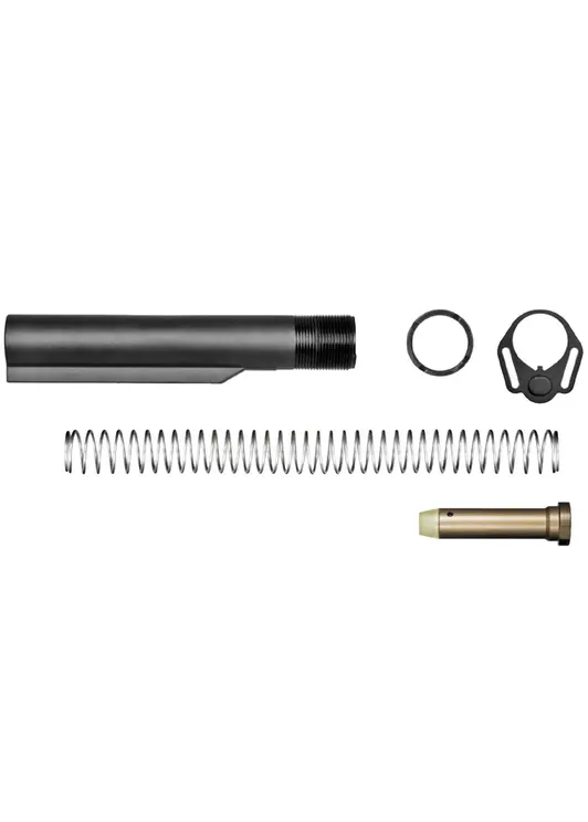 Помимо трубы в наборе присутствует возвратная пружина и компенсатор, гасящий импульс отдачи. Также фирма Patriot побеспокоилась о креплении узла к оружию - для этого в комплекте есть гайка с прижимной пластиной. Последняя одновременно выполняет роль двухсторонней антабки под одноточечный ремень.