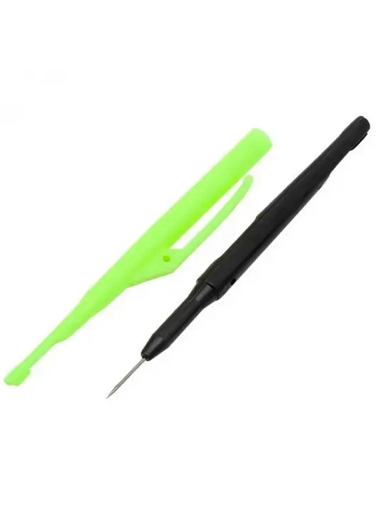 Экстрактор для крючков с иглой. Габариты нержавеющей иглы 1,5 см. Сам экстрактор позволяет без труда извлечь крючок из пасти рыбы, когда она его глубоко заглотила. Это поможет уберечь снасти и меньше травмировать саму добычу. Игла удобна, когда на рыбалке в полевых условиях нужно распутать узелок на леске. Острое жало закрывается колпачком. На нем предусмотрено крепление, чтобы зафиксировать экстрактор, как ручку, на кармане.