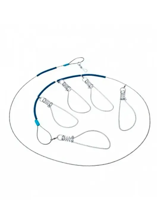 Кукан металлический — это простое и эффективное средство для хранения рыбы в естественной среде во время рыбалки. Он изготовлен из прочного троса с петлёй на конце, в которую продет карабин. Крепление петли заизолировано, а трос имеет анти-коррозионное покрытие, что обеспечивает долговечность использования.