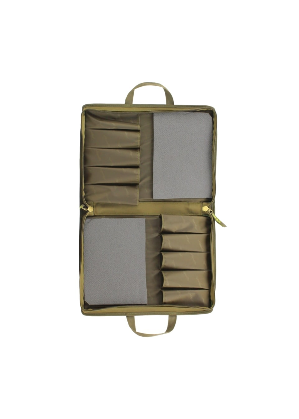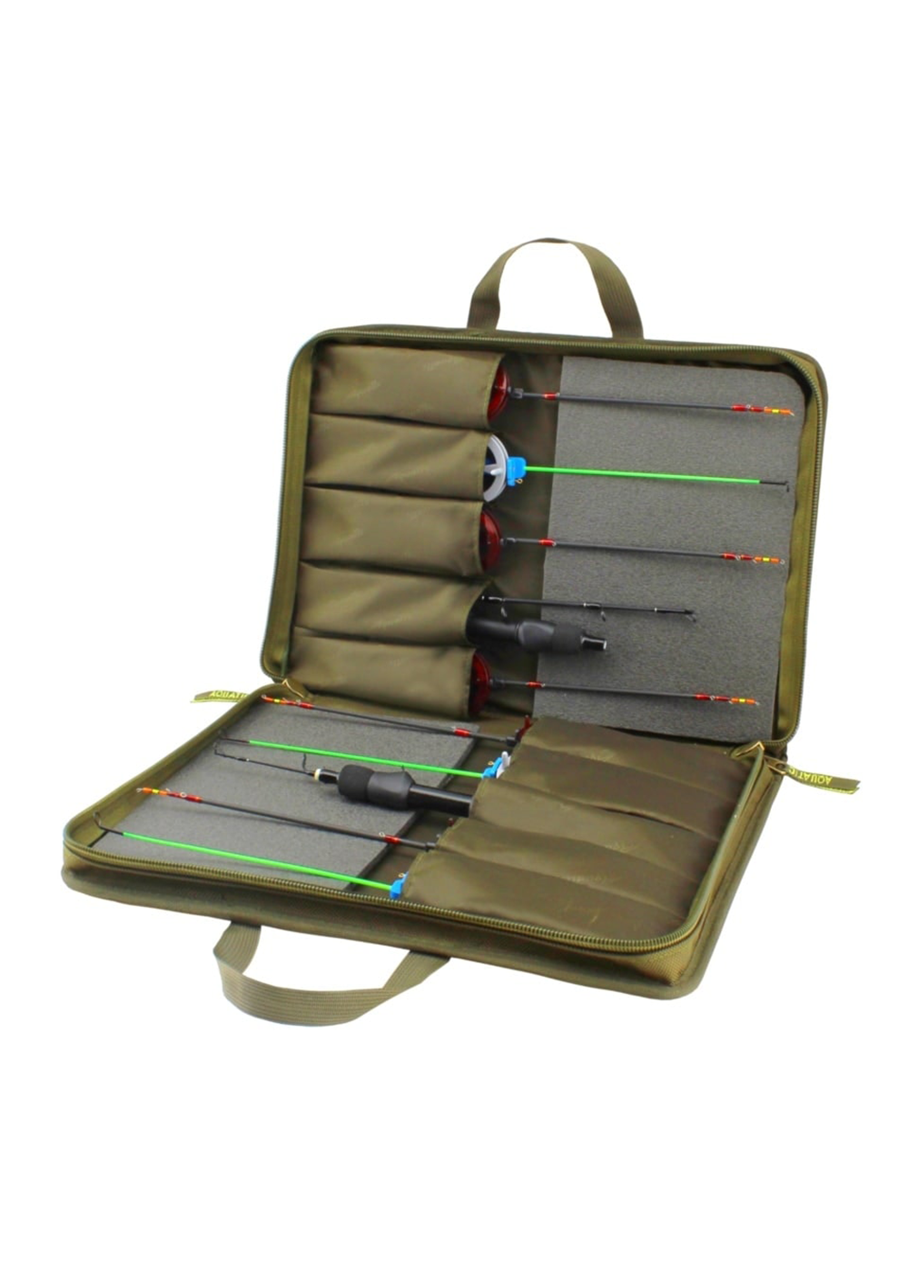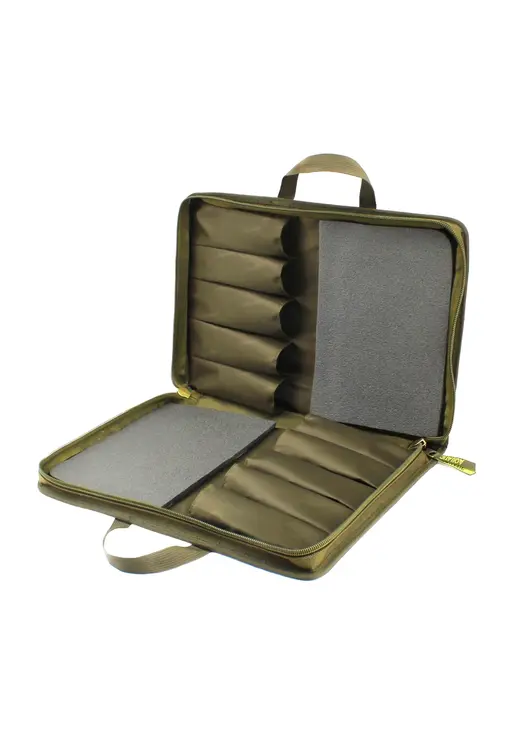 Жесткий двухсторонний чехол Ч-42Х в цвете хаки предназначен для хранения и транспортировки до 10 зимних удочек длиной до 380 мм. Изделие выполнено из прочного непромокаемого материала с надежной двухсторонней молнией. Конструкция предусматривает двойную ручку из стропы для удобной переноски. Чехол имеет двухсторонний дизайн с 5 отделениями на каждой стороне, оснащенными нейлоновыми фиксаторами для надежной фиксации удилищ. Специальные мягкие вставки из пены защищают хлыстики от повреждений