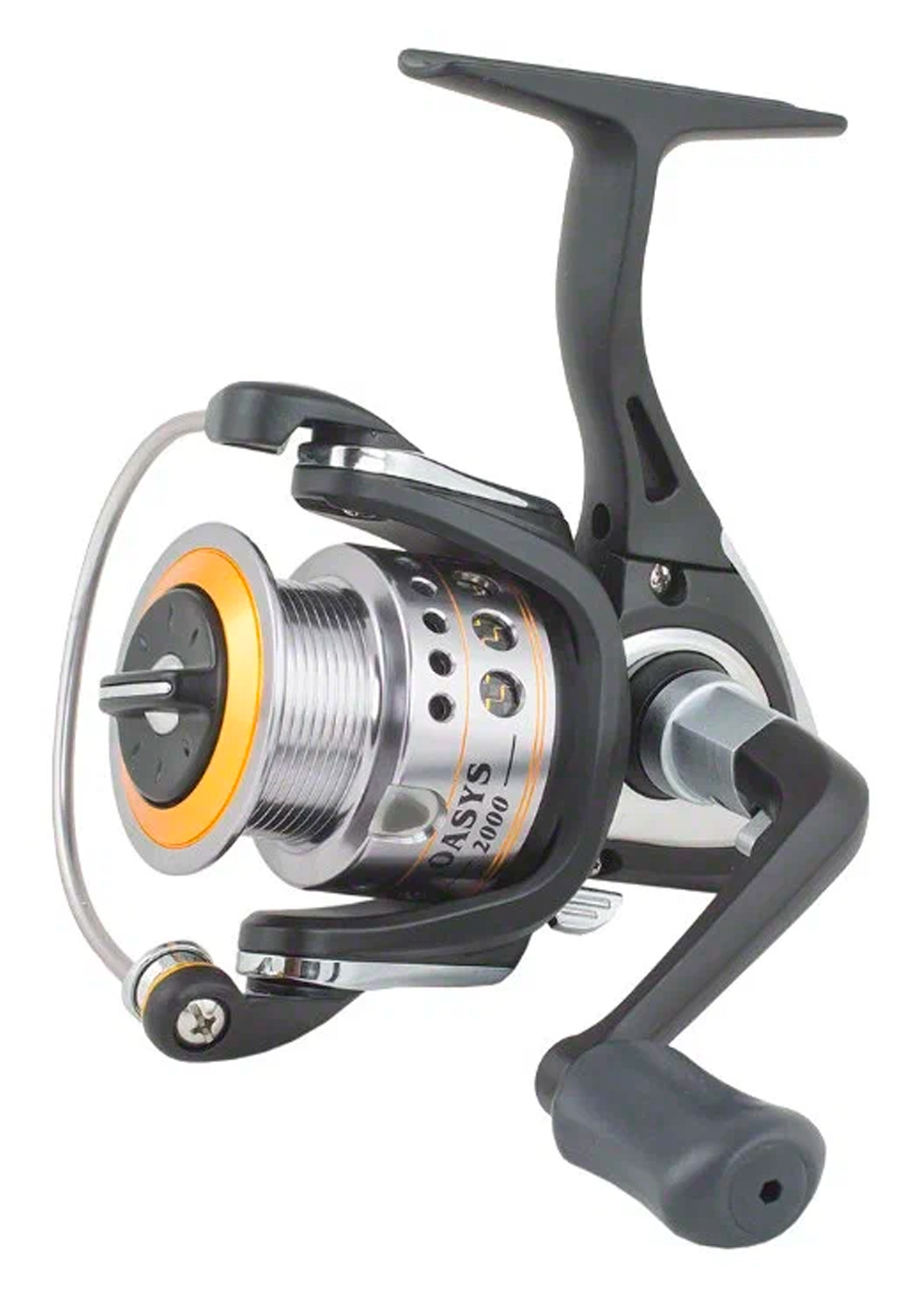 Катушка безынерционная RYOBI Oasys. Корпус и ротор катушки выполнен из ударопрочного графита. Катушка оснащается передним фрикционным тормозом с возможностью тонкой регулировки и сбалансированным V-образным ротором. Специальная форма переднего бортика шпули улучшает сход лески при забросе и снижает вероятность образования петель.
