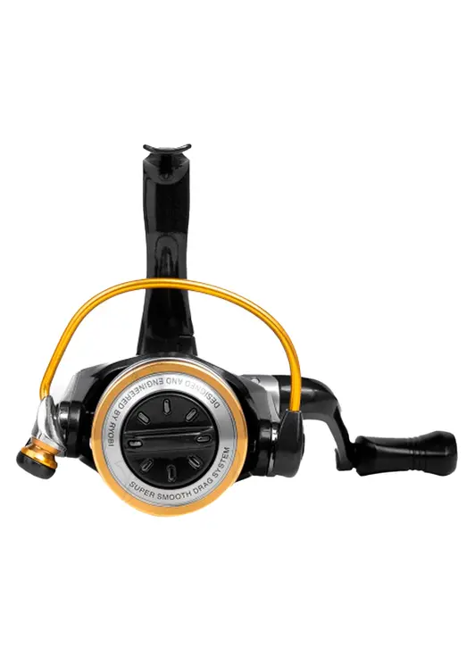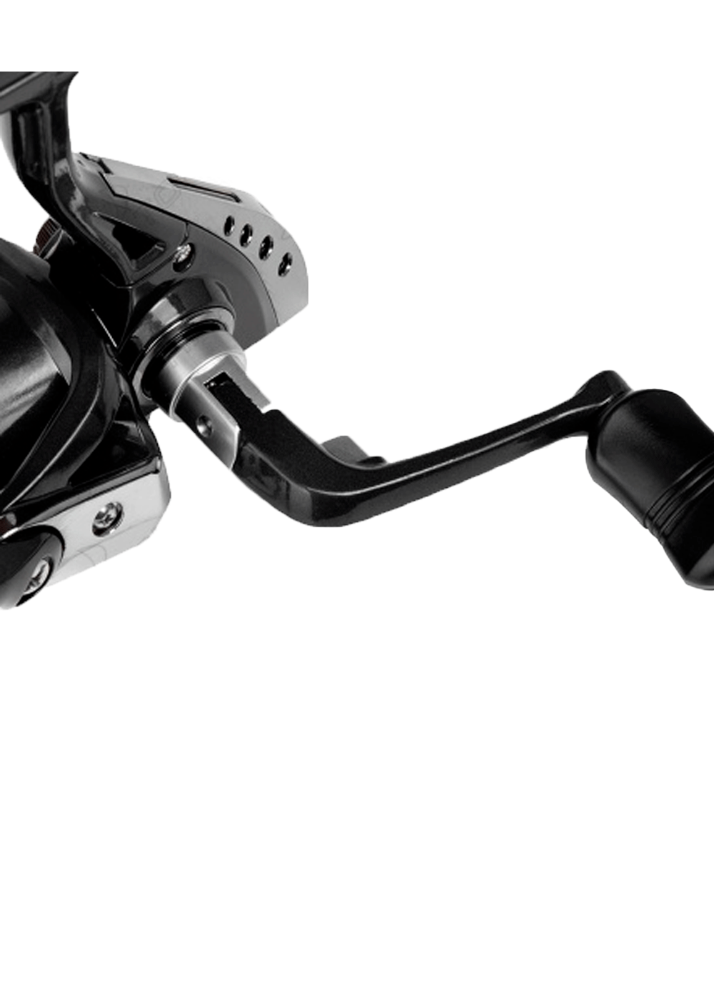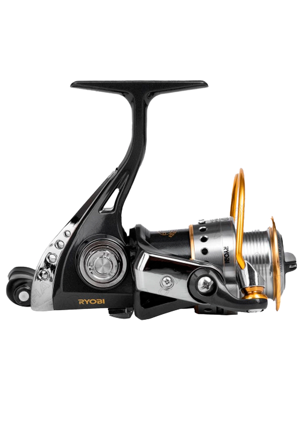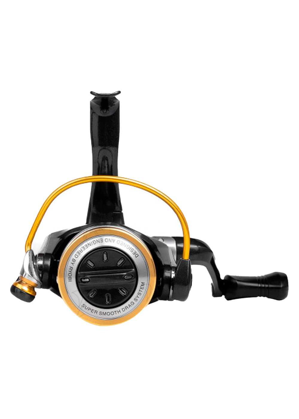 Ryobi Fokamo - это линейка безынерционных катушек, состоящая из четырех моделей. За счет применения легкого полимера при изготовлении основных частей корпуса и V-образного ротора, вес каждого экземпляра не слишком большой и находится в пределах от 265 до 315 гр. Передаточное число тоже может разниться и составляет либо 5.1:1, либо 5.0:1. Чтобы механизм работал более плавно, в катушках устанавливаются пять подшипников (четыре шариковых и один роликовый). А с целью снижения излишней вибрации, ротор проходит специальную балансировку. Есть система анти-реверса (для предотвращения незапланированного прокручивания назад), но также имеется и переключатель реверса (если вдруг появилась необходимость крутить ротор в обратном направлении). Если вы хотите сложить ручку на время хранения катушки - воспользуйтесь отдельной кнопкой. Ну а для перестановки этого элемента под другую руку - отверните декоративную заглушку, находящуюся с другой стороны корпуса, и открутите фиксирующий винт. После этого поменяйте их местами. Ryobi Fokamo комплектуется металлической шпулей, способной вместить от 0.205мм/145м до 0.33мм/140м монофильной лески. Фрикцион передний, с максимальной нагрузкой 2,5 или 5 кг.
