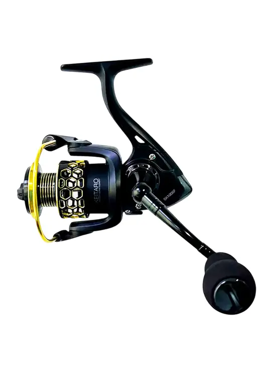 Катушка безынерционная Sprut Keitaro 5+1bb - рыболовная катушка серии Keitaro с низкопрофильной перфорированной алюминиевой шпулей имеющая нитрид-титановым покрытие и системой дальнего заброса с V-образным сбросом от компании Sprut, новинка 2023 года. Катушка может быть использована как для ловли на спиннинг, так и для оснащения поплавочной снасти. Корпус катушки изготовлен из ударопрочного графита и имеет систему влагоустойчивости. Благодаря современной конструкции и шести шариковым подшипникам, катушка Keitaro имеет сбалансированный ход и увеличенный ресурс эксплуатации в любых условиях. При разработках катушки использовалась компьютерная система балансировки ротора, что позволило достичь максимально плавного хода. Душка лесоукладывателя катушки Sprut Keitaro способствует снижению инерции, а специальная форма ролика с нитрид-титановым покрытием предохраняет от закручивания лески и позволяет использовать шнуры минимального диаметра. Силовой агрегат катушки Sprut Keitaro изготовлен методом холодной ковки. Металлическая рукоять и кноб с покрытием из материала EVA имеют винтовую фиксацию, что придает дополнительную надежность конструкции.