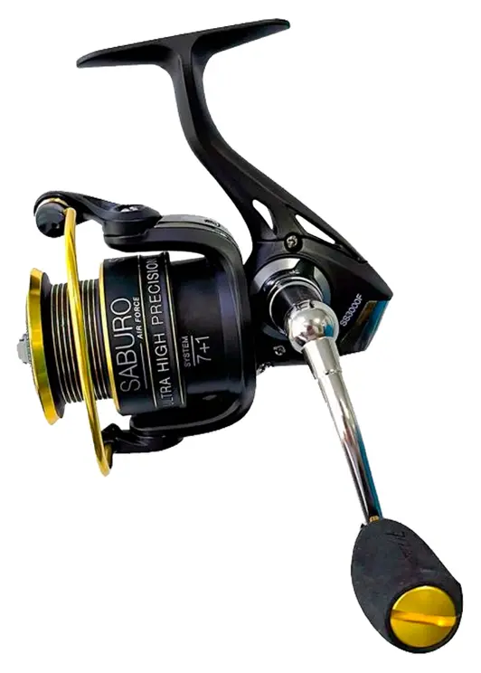 Катушка безынерционная Sprut Saburo SS3000F 7+1bb - универсальная спиннинговая катушка серии Saburo с низкопрофильной шпулей с системой дальнего заброса от компании Sprut, новинка 2023 года. Катушка может быть использована как для ловли на спиннинг, так и для оснащения поплавочной снасти. Корпус катушки изготовлен из ударопрочного графита. Благодаря современной конструкции и восьми шариковым подшипникам, катушка Saburo имеет сбалансированный ход и увеличенный ресурс эксплуатации в любых условиях. При разработках катушки использовалась компьютерная система балансировки ротора, что позволило достичь максимально плавного хода. Душка лесоукладывателя катушки Sprut Saburo способствует снижению инерции, а специальная форма ролика с нитрид-титановым покрытием предохраняет от закручивания лески и позволяет использовать шнуры минимального диаметра. Силовой агрегат катушки Sprut Saburo SS3000F выполнен из пары твердосплавный алюминий и бронза. Металлическая рукоять с неопреновым покрытием и винтовой фиксацией, придает дополнительную надежность конструкции. При обзоре характеристик и тестов, катушка Sprut Saburo SS3000F 7+1bb получила положительные отзывы и рейтинги экспертов по рыбной ловли.