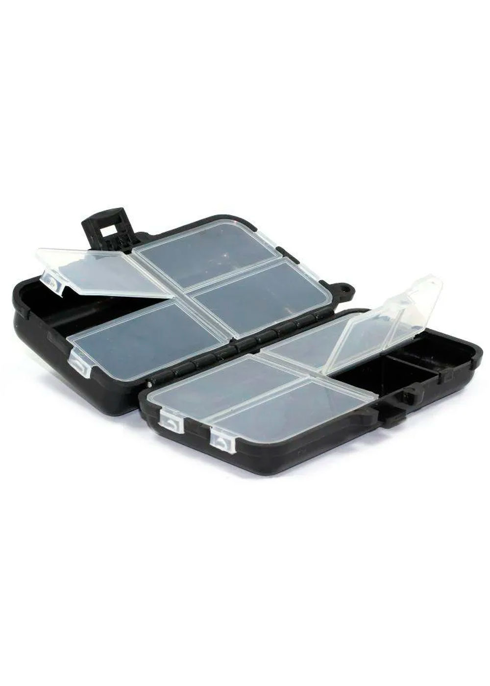 Оснащение рыболова включает в себя множество мелочей. Для их удобного хранения и перевозки торговая марка Namazu предлагает модель компактного кейса, который вместит в себя все мелочи оснастки, а также приманки. Коробка двусторонняя. Одна из сторон имеет четыре отделения размерами 5х2,8х1,8 см. Вторая сторона поделена на три ячейки размерами 5х2,8х1 см, одно отделение 2,8х2,5х1 см, еще одно – 2,1х2,5х1 см. В комплекте к данному кейсу прилагается страховочный шнурок для более удобных манипуляций. Шнурок присоединяется на карабине. Выполнен Namazu Case из прочного пластика с надежными замками. Вес кейса составляет всего 63 гр.