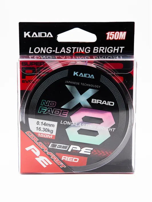 Плетеный шнур Kaida No Fade PE 8X с диаметром 0.14 мм - это высококачественный рыболовный шнур красного цвета с уникальными характеристиками.