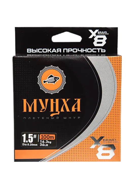 Плетёный шнур МУНХА Braid X8 100м, зелёный, 0,20мм — это высококачественный плетёный шнур, предназначенный для различных видов рыбалки.