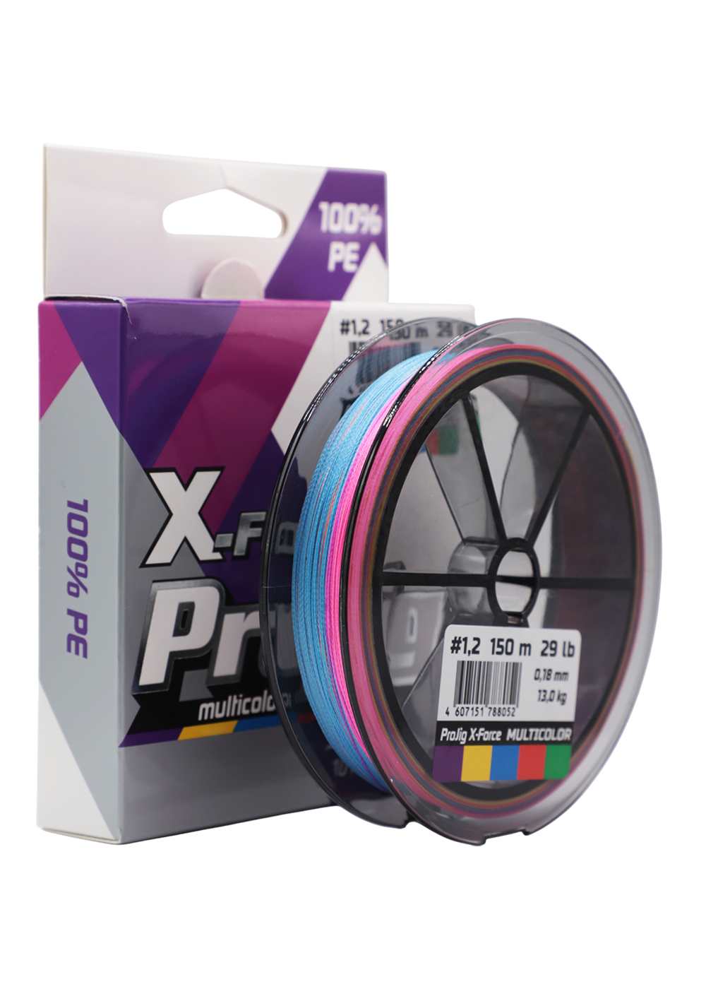 Шнур ProJig X-Force Multicolor 0,18 мм, 13,0 кг, 150 м