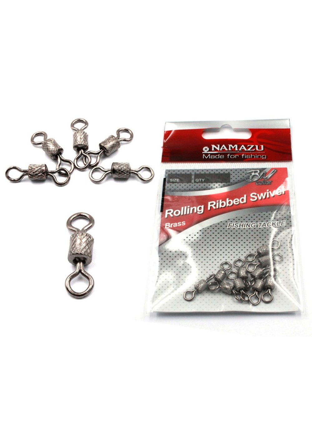 Рыболовный вертлюг (вертлюжок) - это один из элементов оснастки, состоящий из колец, соединённых вращающимся шарниром. Вертлюг необходим для того, чтобы препятствовать закручиванию рыболовной лески(плетенки или монофильной), сохранять целостность лески , для быстроты и удобства смены приманки. Главное – это лёгкость вращения петель вертлюжка. Идеальная работа вертлюга решает исход вываживания хищной рыбы (щука, окунь, судак…). Оснастка подходит для многих видов летней рыбалки (спиннинговой, фидерной, донной, поплавочной...). Вертлюг Namazu ROLLING RIBBED SWIVEL изготовлен из латуни, цвет BN (черный никель), размер 8, тест 9 кг, уп. 10шт.