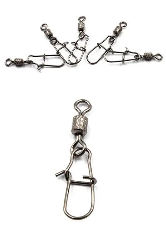 Вертлюг с застежкой Namazu Rolling Ribbed Swivel With Nice Snap позволяет оперативно менять приманки или кормушки. И сводит риск перекручивания лески к минимуму. Эксперты бренда Namazu предлагают серию вертлюжков Rolling Ribbed Swivel, оснащенных карабинами Nice Snap. Такое крепление будет сохранять подвижность, что удобно при ловле на течении или при использовании блесен-вращалок. Карабин - простая и надежная застежка, потому замена приманки не составит труда. Линейка объединяет модели разных размеров. Потому у рыбака есть возможность подобрать вариант под конкретные условия и общий тест снасти.