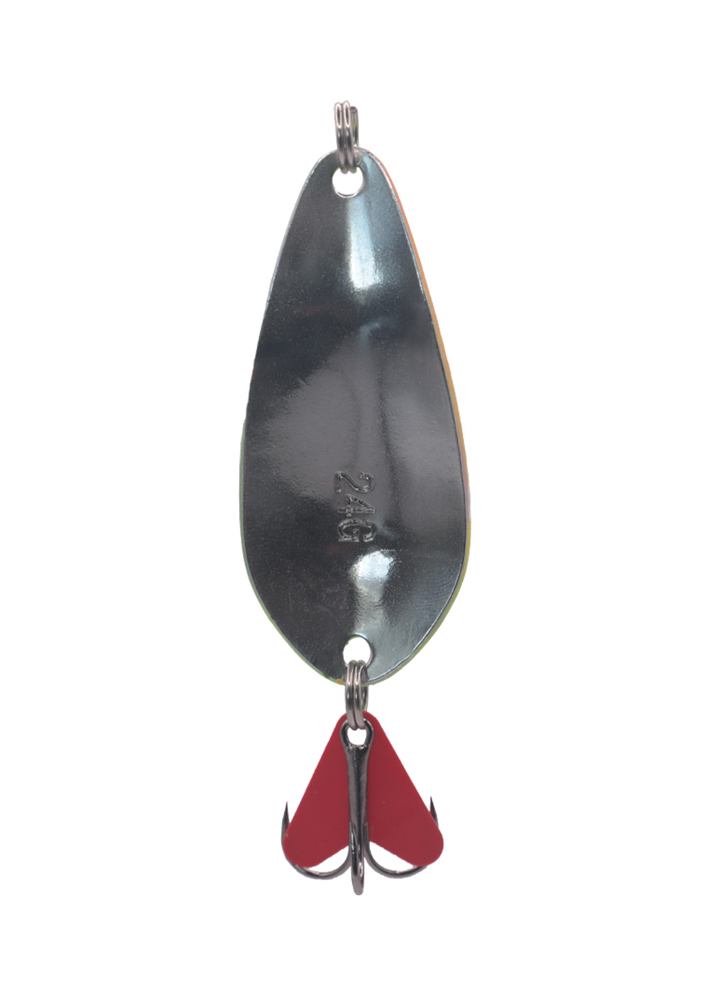 Вес 24 грамма обеспечивает дальний и точный заброс, а стабильная игра при различных типах проводки делает эту модель универсальной для ловли хищника на глубине. Зеркально отполированная внутренняя сторона с маркировкой веса усиливает блик в воде, дополнительно провоцируя рыбу.