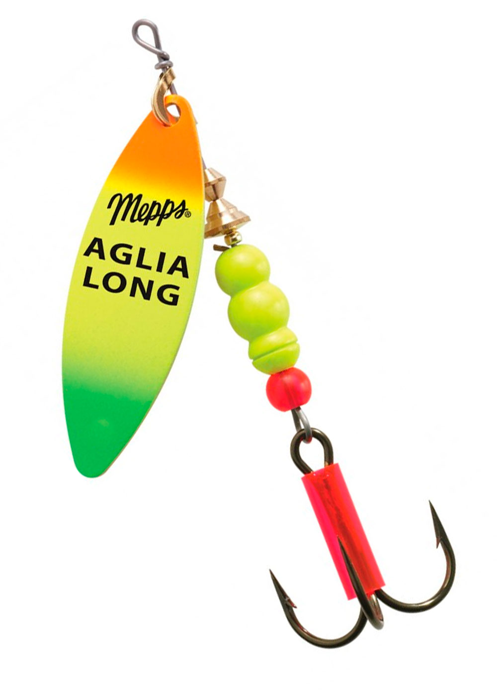 Блесна Mepps Aglia Long Or/Tiger №2 - это аналогичный вариант блесны с лепестком Aglia Long и размером №2. Отличием является цвет - оранжевый с черными полосками (Or/Tiger), что делает блесну более заметной для рыбы.