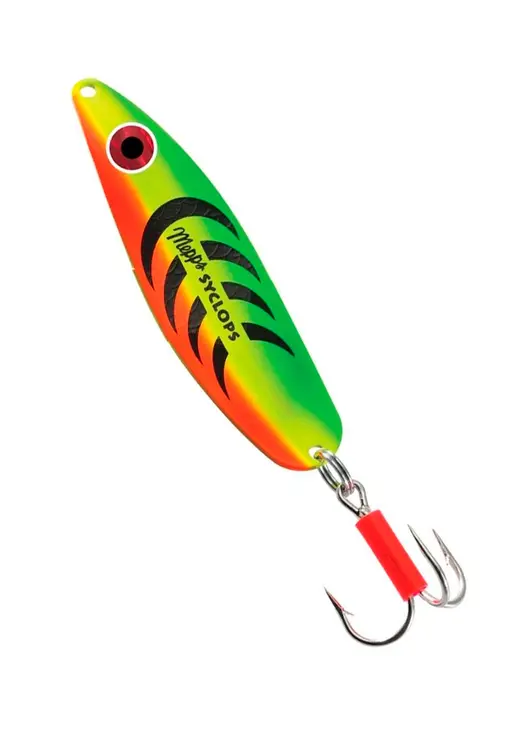 Mepps Syclops Tiger №3 (26g) - классическая колеблющаяся блесна, предназначенная для ловли крупной хищной рыбы на больших глубинах или сильном течении. Вес - 26 г, размер №3. Особенностью данной модели является яркий окрас, имитирующий окрас тигра, что привлекает внимание хищника и стимулирует его к поклевке.