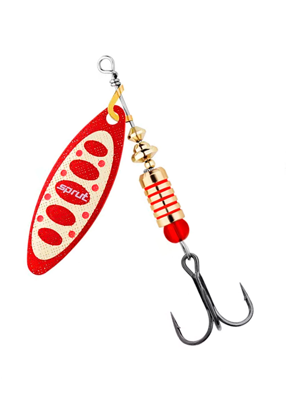 Блесна вращающаяся “Sprut” Atra Spinner №3 весом 11.5 грамм с окраской RG (золото с красным) - это популярная рыболовная приманка для поимки хищных рыб, преимущественно щуки и окуня. Оснащена острым тройным крючком для надёжной фиксации на рыбе во время поклёвки. Благодаря специальной конструкции и весу создаёт привлекательную игру и имитирует движение мелкой рыбки или другого водного обитателя, провоцируя хищника на атаку. Блестящая окраска RG делает её хорошо заметной в толще воды и повышает её привлекательность для хищников.