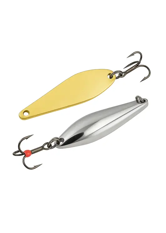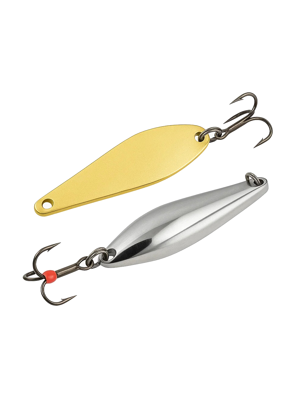 Двустороннее покрытие: одна сторона — полированный никель (Ni), вторая — матовое золото (Go). Такая комбинация позволяет варьировать световые эффекты и подбирать оптимальный визуальный сигнал под конкретные условия ловли.