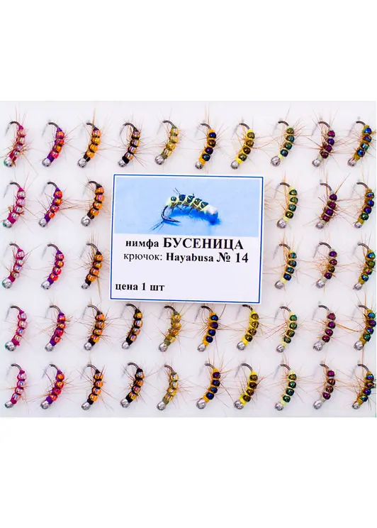 ЧР 5833 - это нимфа, имитирующая гусеницу. Изготовлена из крючков Hayabusa №12 и имеет размеры 12 мм. Применяется для ловли различных видов рыб на течении.