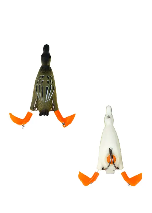 Силиконовая уточка LH-1114 Плавающая поверхностная приманка типа «глиссер» - уточка. Полая, сминающаяся при смыкании челюстей хищника, высвобождая острый крючок. Очень реалистичный внешний вид, привлекающий внимание хищников. Содержит аттрактант, привлекающий рыбу. Идеально подходит для ловли щук и бассов в мелководных, заросших водорослями и кувшинками, участках. Поверхность воды, где приманка свободно скользит, не зацепляясь за растения.