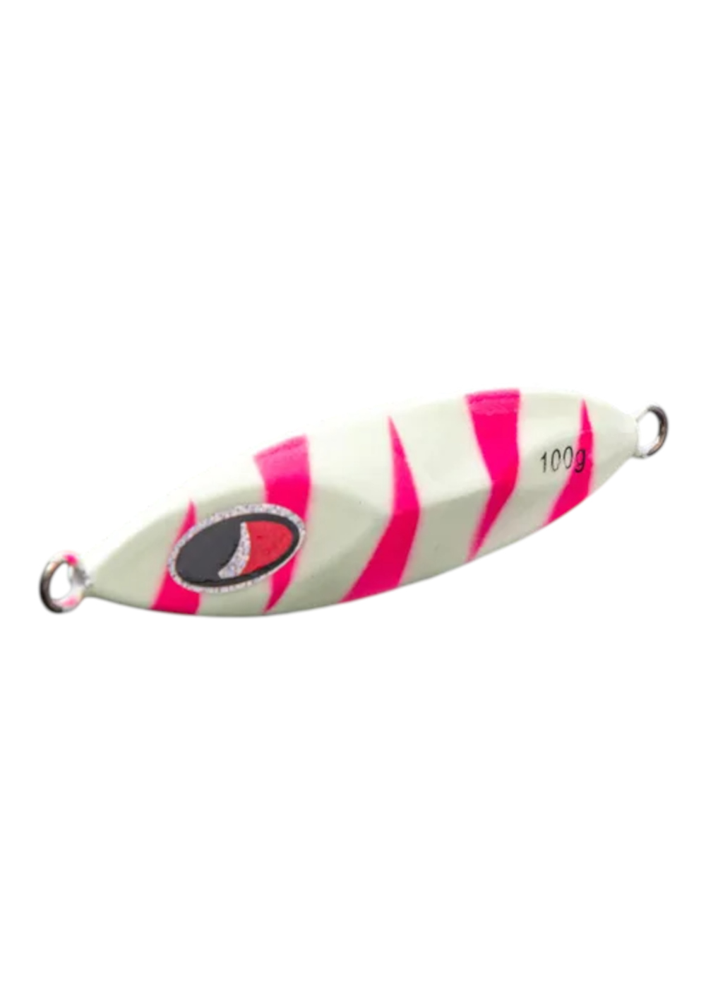 Пилькер Noeby NBL1005N 80 мм / 60 г в расцветке NJ002 — отличная приманка для ловли в условиях плохой видимости: на глубине, в мутной воде или при ночной рыбалке. Белый корпус с яркими розовыми полосами работает как визуальный раздражитель, привлекая внимание хищника с большого расстояния. Приманка светится в темноте благодаря люминесцентному покрытию.
