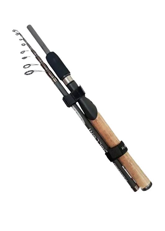 Предлагаем вам телескопический спиннинг Kaida Gallant с тестом 7-28 и быстрым строем. Очень компактный и удобный спиннинг который по своим характеристикам никак не уступает штекерным моделям. Спиннинг идет в твердом тубусе, отлично подойдет для путешествий и прогулок на рыбалку, поскольку длинна тубуса всего 45 см. На тубусе есть ручка, за счет чего его всегда можно взять с собой. Спиннинг в сложенном состоянии 40 сантиметров, вес 145 грамм, состоит из двух частей, изготовлен из карбона марки IM7, ручка выполнена из пробкового дерева. Компактный спиннинг это отличный, нужный и оригинальный подарок для начинающего и опытного рыбака.