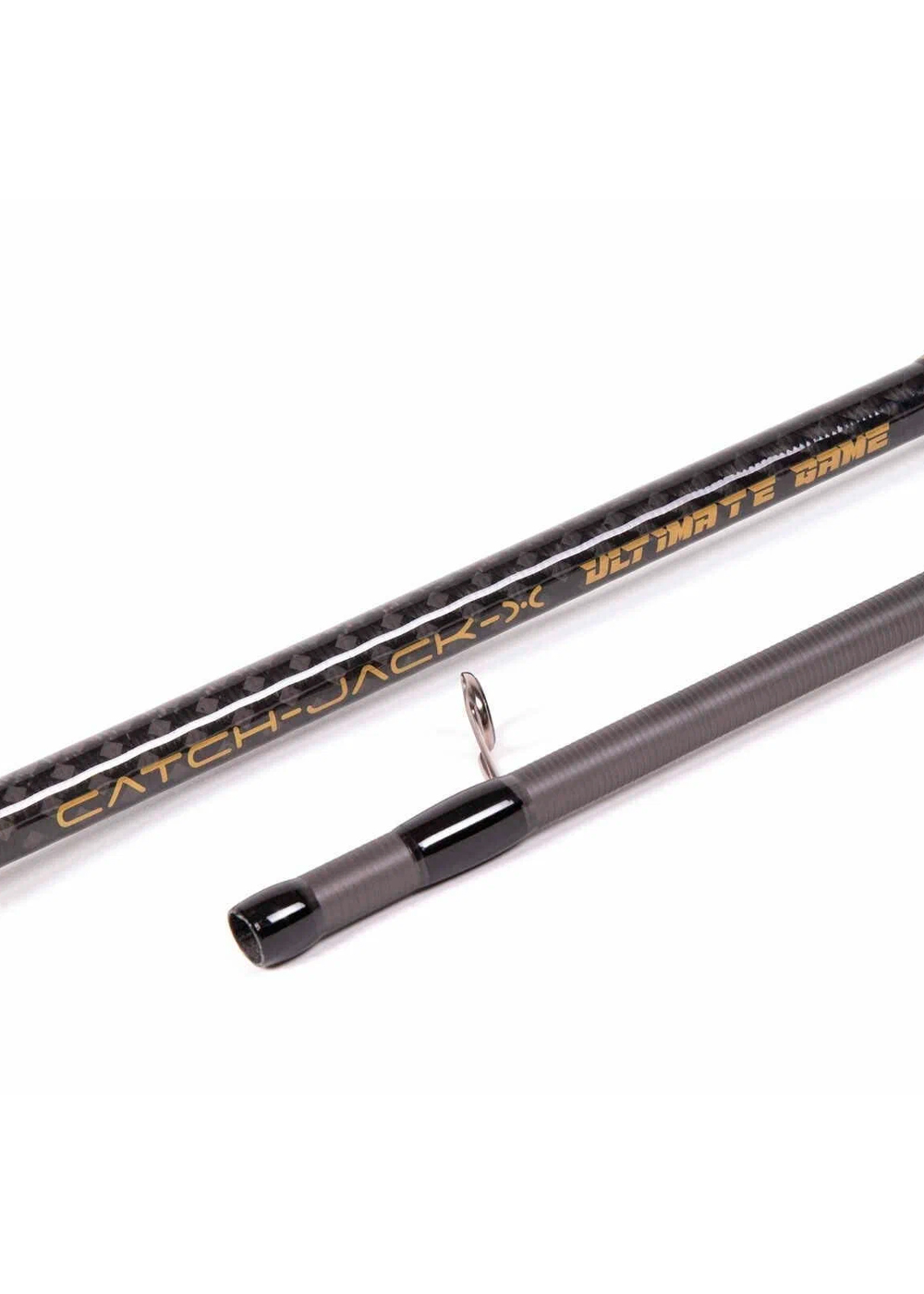 Серия универсальных спиннингов широкого профиля Namazu Pro Catch-Jack-X Ultimate game IM8, в которой можно подобрать модель практически для любых задач. Данная серия исполнена из достаточно лёгкого, надёжного и информативного карбона IM8 и оснащена качественной фурнитурой. Пропускные кольца изготовлены в противозахлёстных стальных рамах со вставками SiC, рукоять разнесённая и выполнена из EVA. Строй всех удилищ – быстрый, при этом сравнительно мягкая вершинка позволяет без проблем визуально контролировать проводку приманки. Комлевая часть отличается приличным сдерживающим ресурсом, что немаловажно при ловле крупного хищника. Серия представлена 15 моделями удилищ классов Ultra Light, Light, Medium, Heavy, которые удовлетворяют большинство потребностей спиннинговой ловли. Тест по леске: 8-18LB