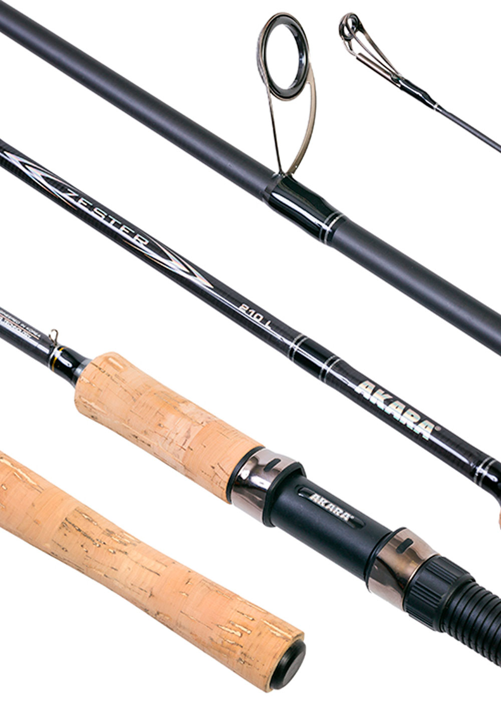 Zester - линейка универсальных спиннингов от AKARA. Спиннинги этой серии обладают хорошими бросковыми характеристиками и чувствительны при проводке. Характеризуются бланком средне-быстрого строя, который позволяет справиться с хищником любого размера. Пробковая рукоять.